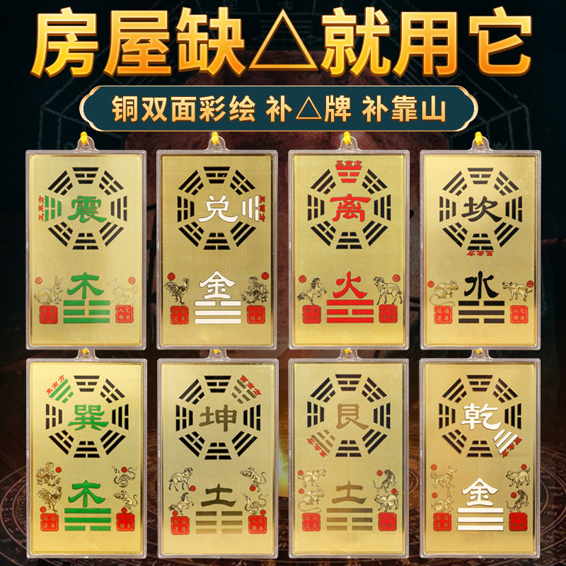 纯铜乾卦补角牌八卦镜凸镜房屋缺角补角石石敢当五帝钱挂件离坤坎