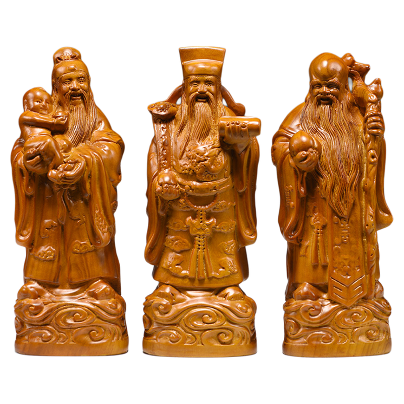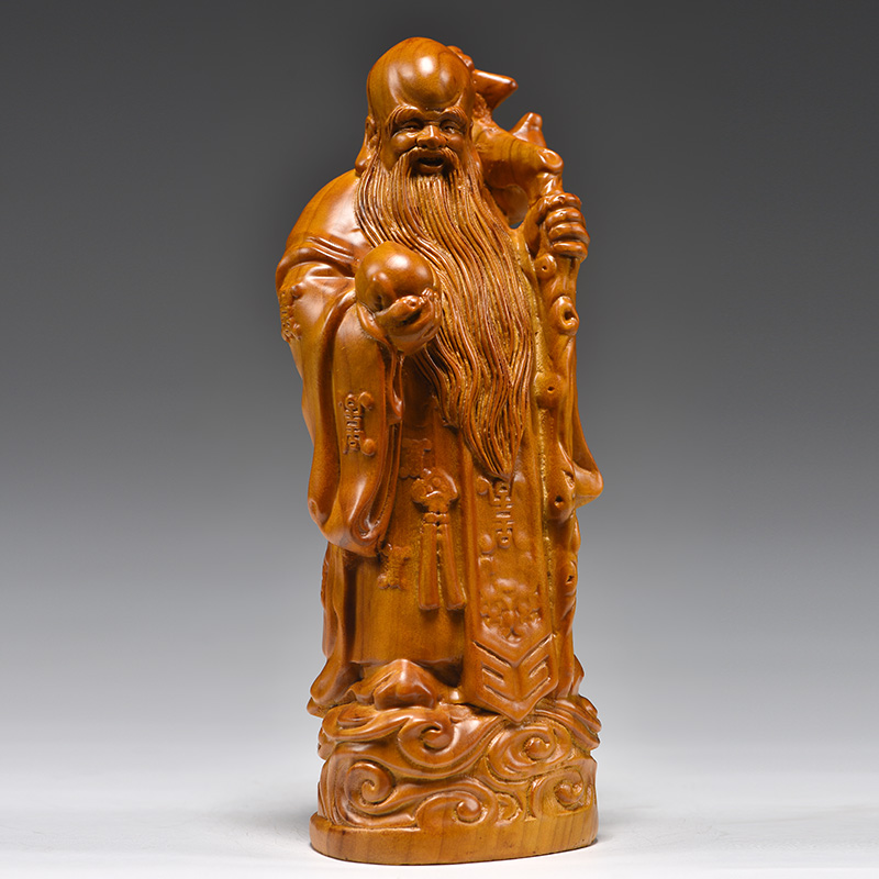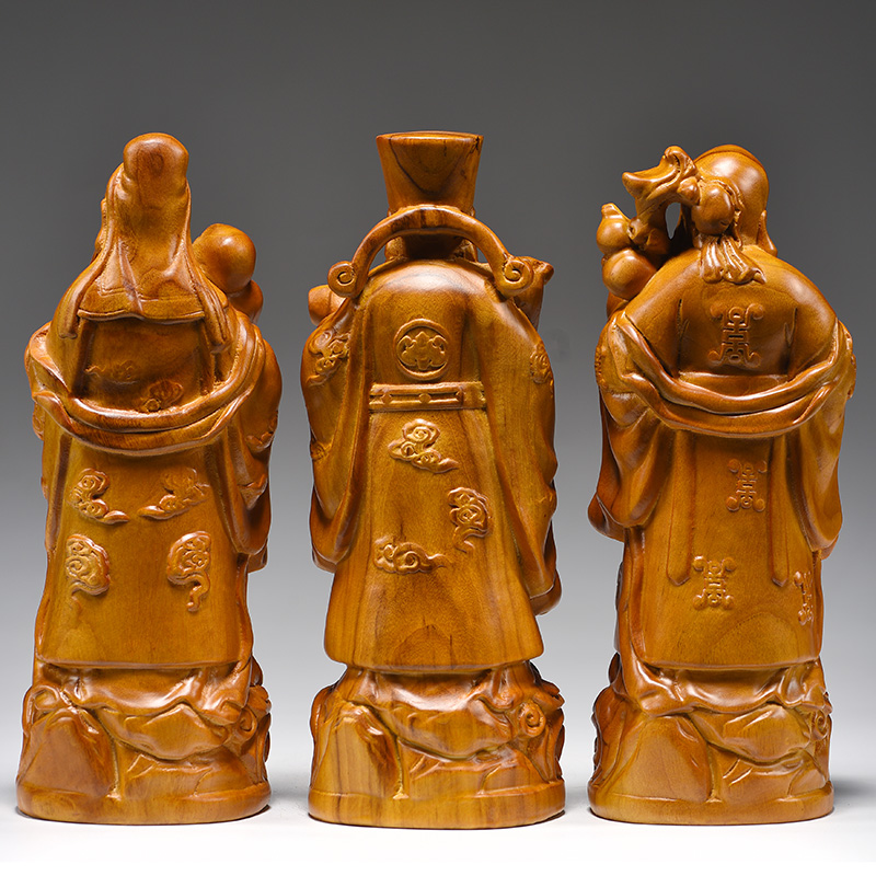 香樟木雕福禄寿三星像摆件实木质寿星公像送长辈领导生日贺寿礼品