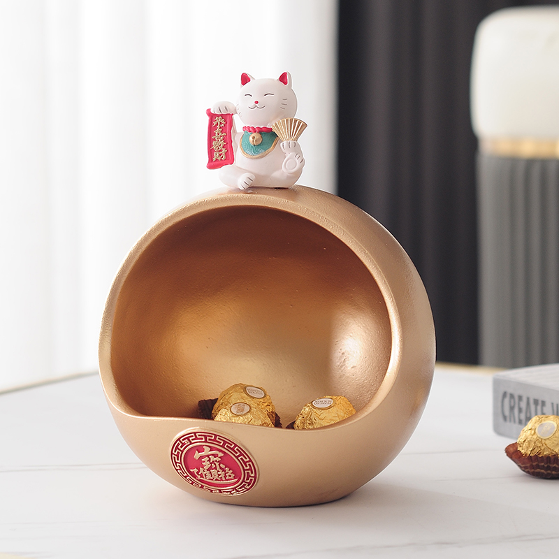 现代轻奢客厅茶几创意招财猫桌面小摆件玄关放钥匙收纳玄关装饰品