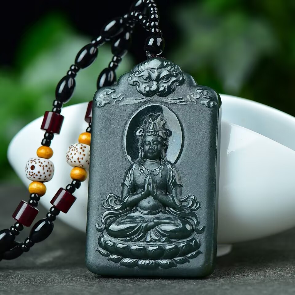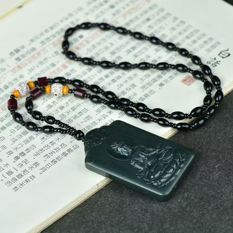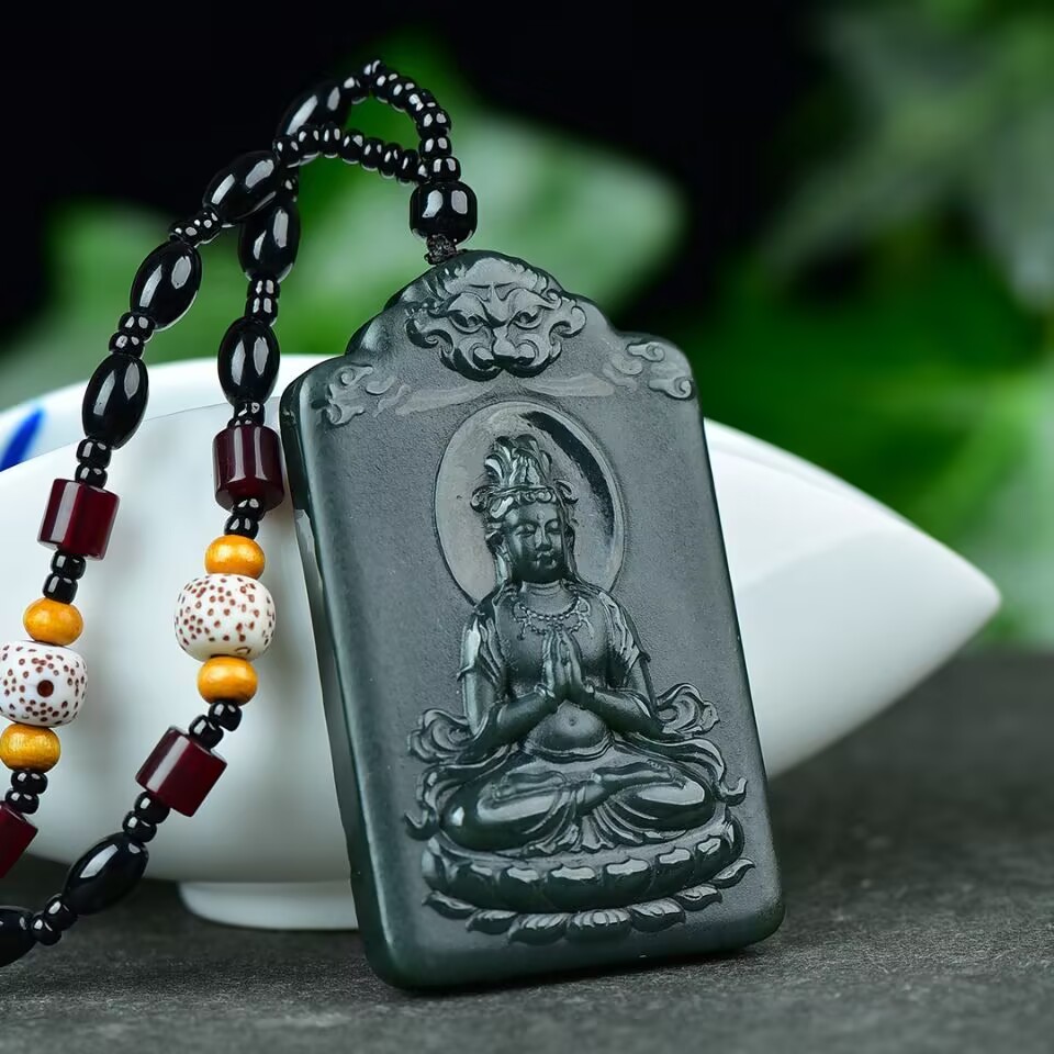 精致和田玉青玉观音菩萨吊坠男款小众设计高级感玉石项链挂坠饰品