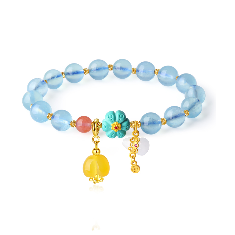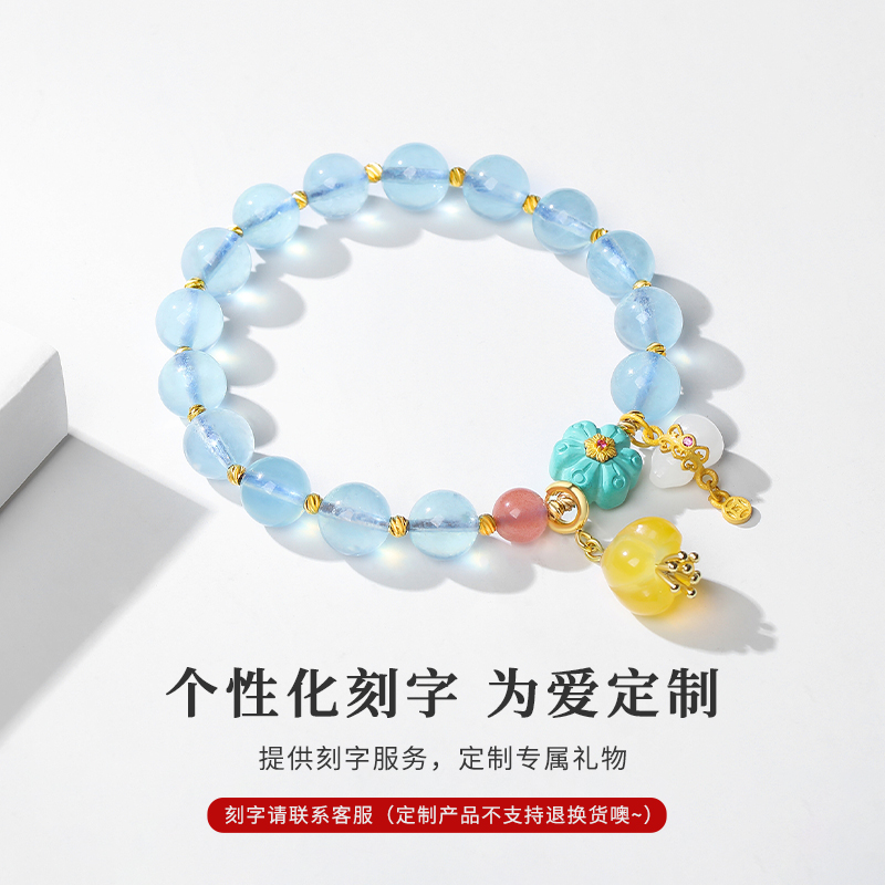 海蓝宝手串女蓝色珠子天然水晶手链铃兰花饰品和田玉葫芦桃花手饰