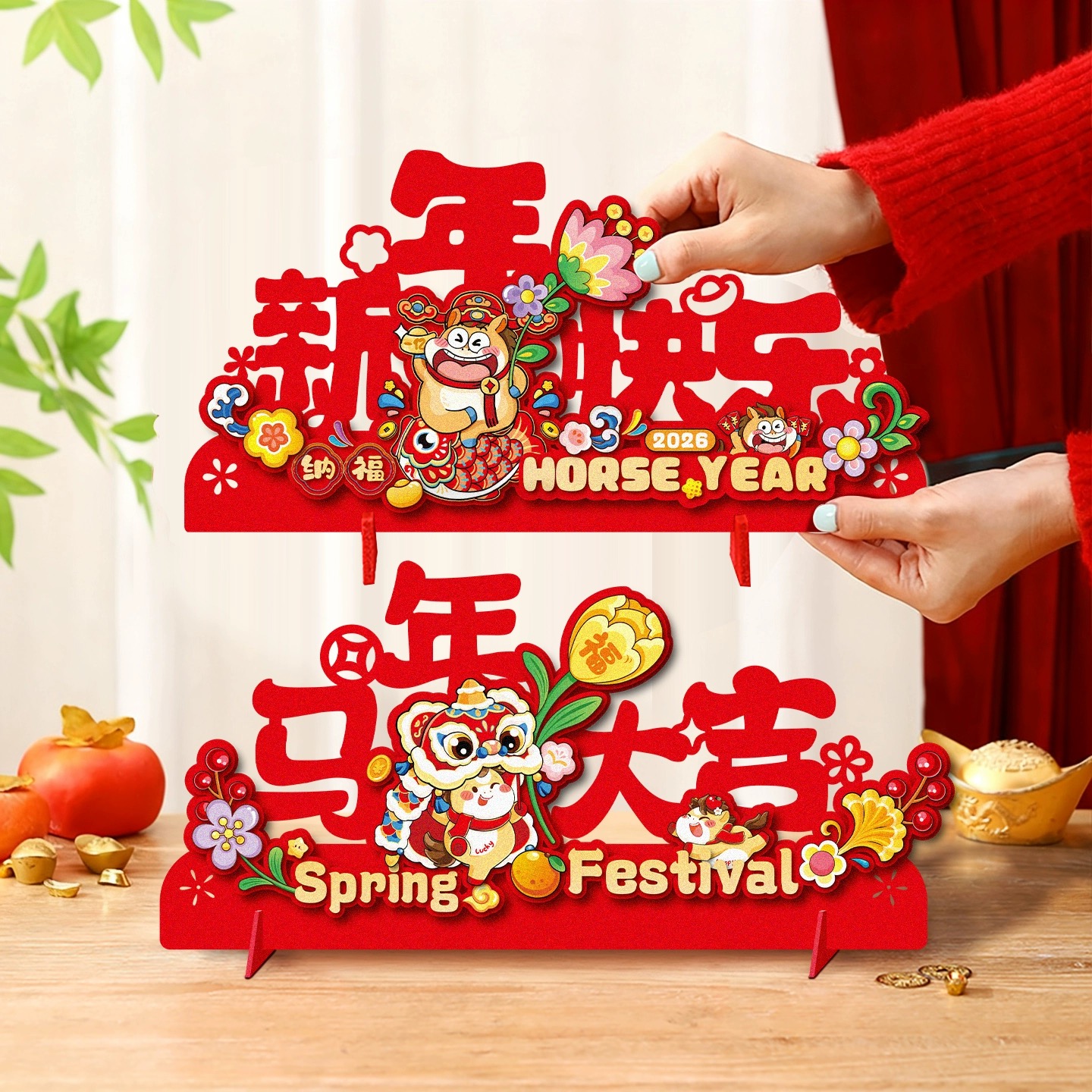 新年装饰桌面摆件2026马年过年春节商场店铺前台公司年会场景布置