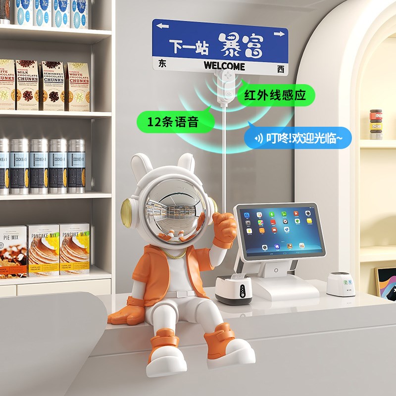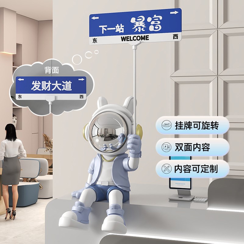 宇航员太空人坐姿摆件电视柜地台收银台前台高级感装饰品开业礼品