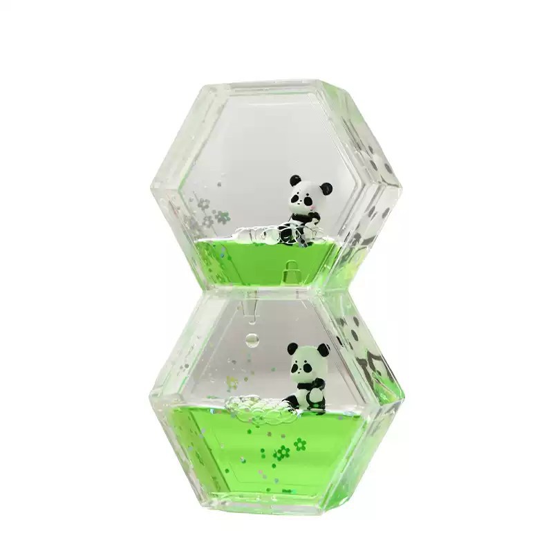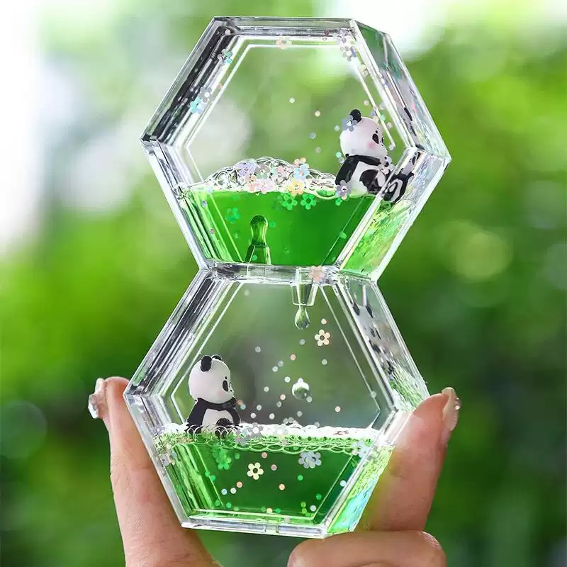 创意油滴沙漏计时器儿童熊猫流沙瓶工位解压情绪稳定治愈桌面摆件