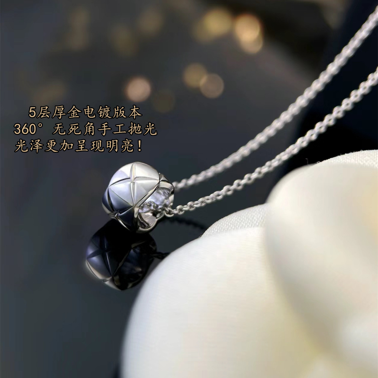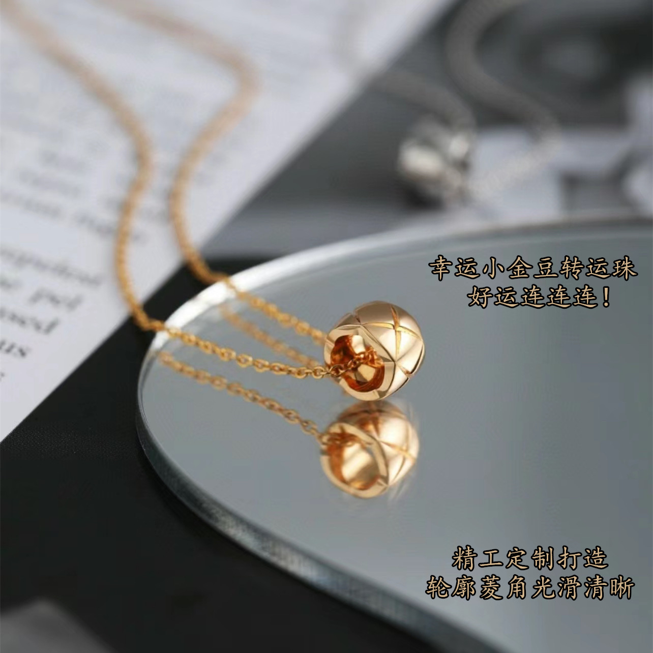 高级感小金豆项链女轻奢小香风镀18k玫瑰金新款coco菱格纹锁骨链