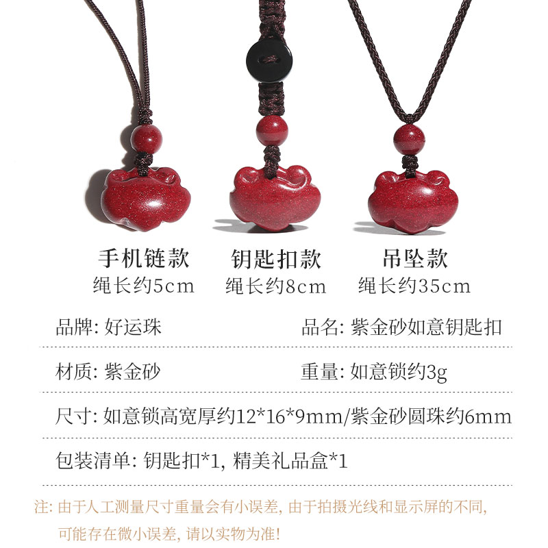朱砂本命年天然如意吊坠女项链钥匙扣护身符挂件男石英岩玉镯