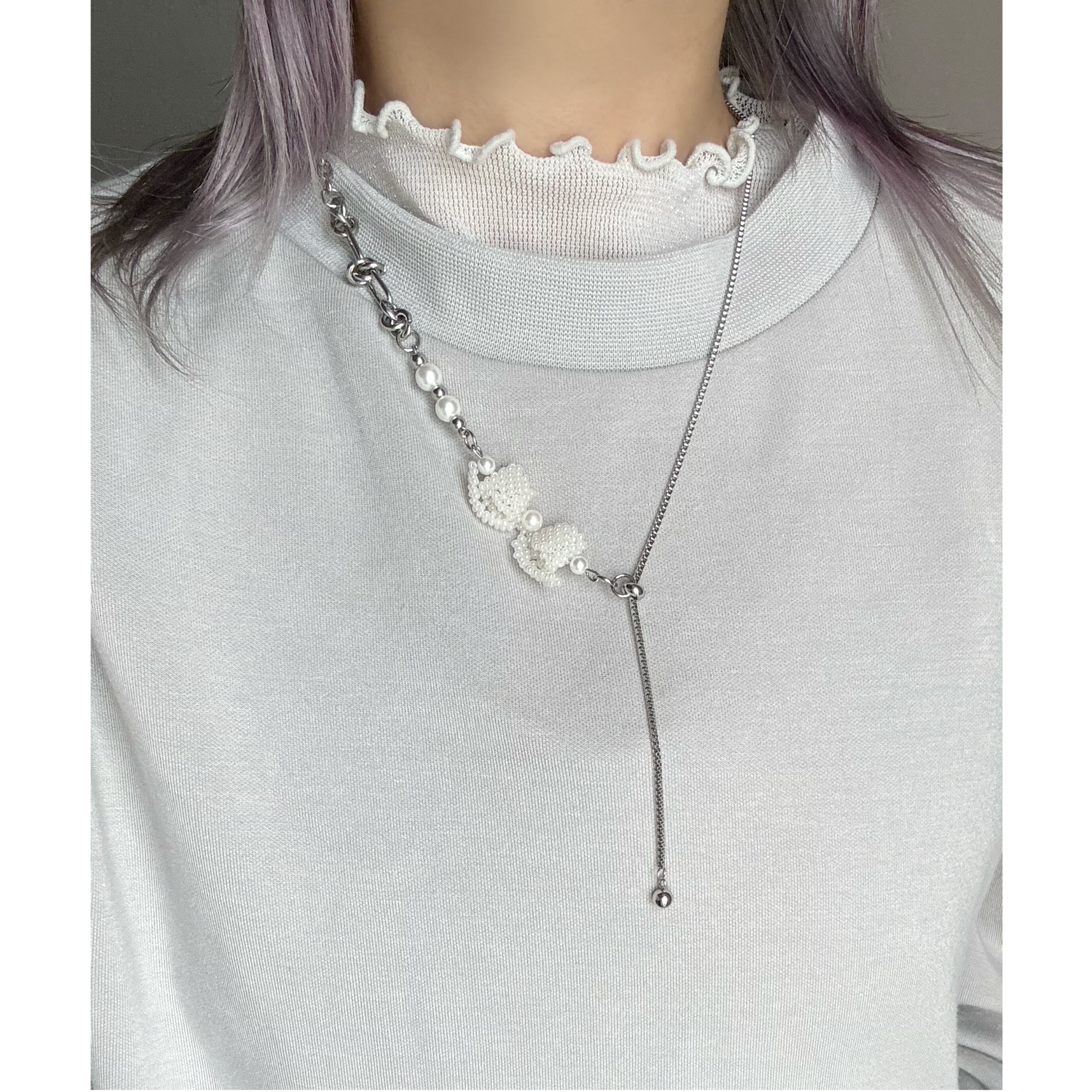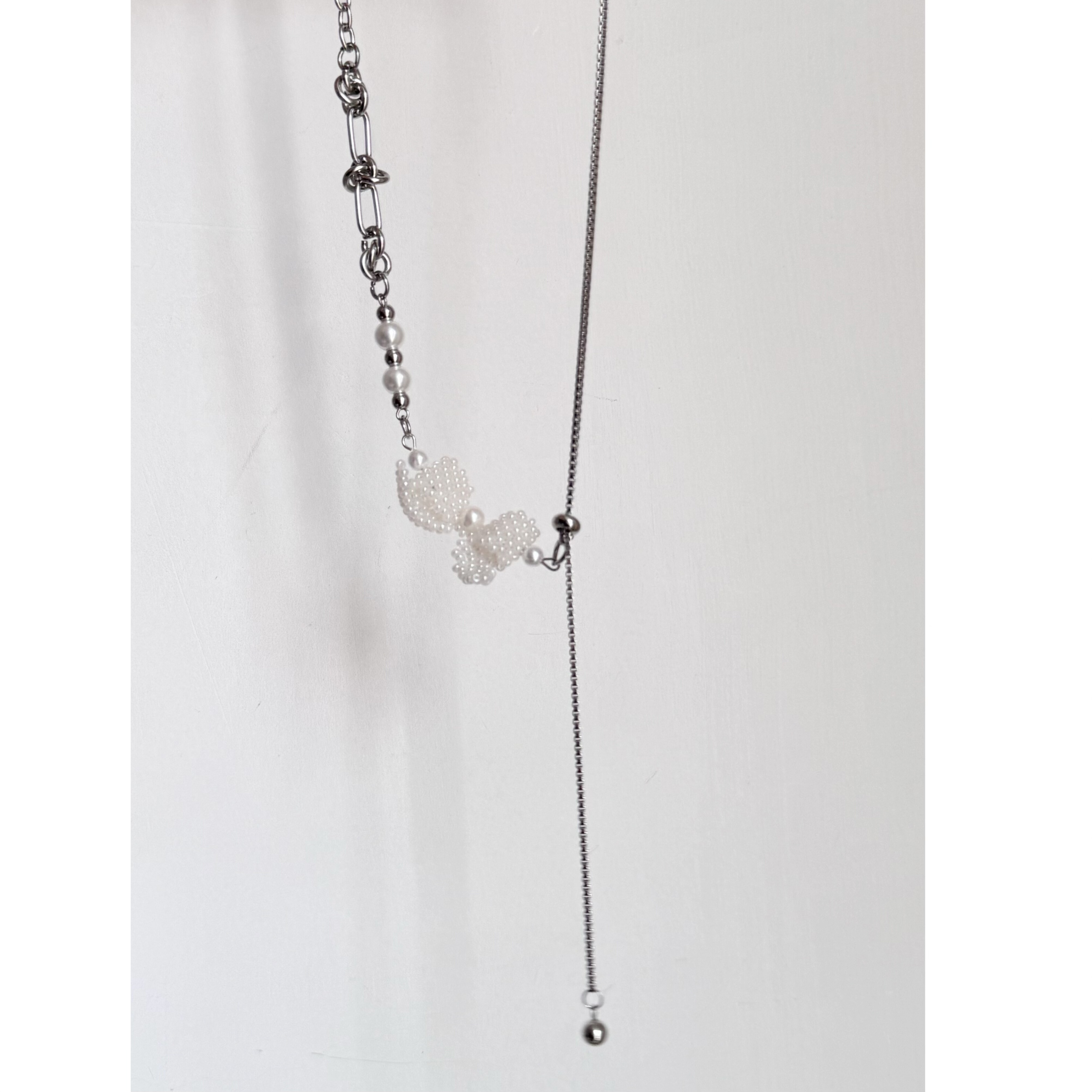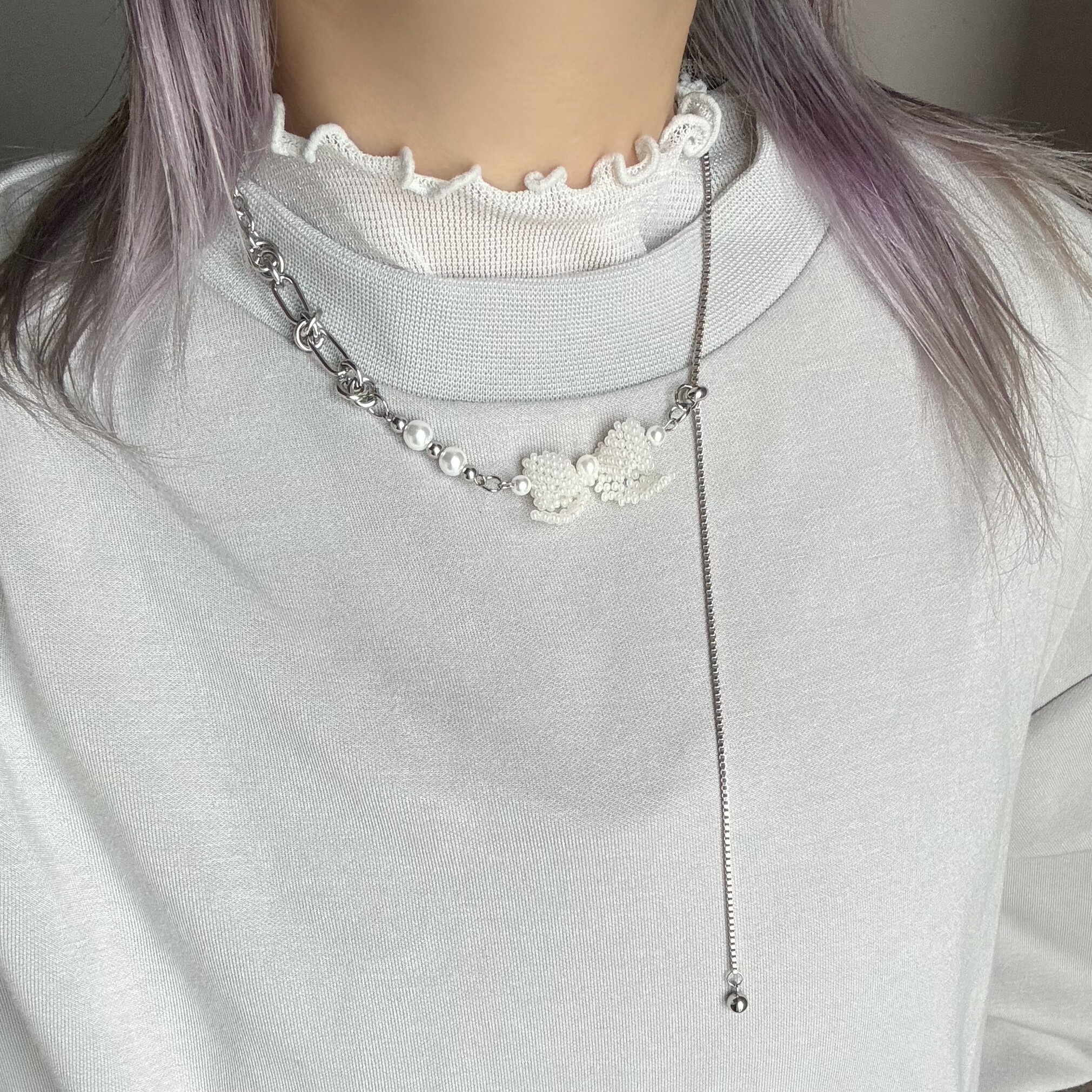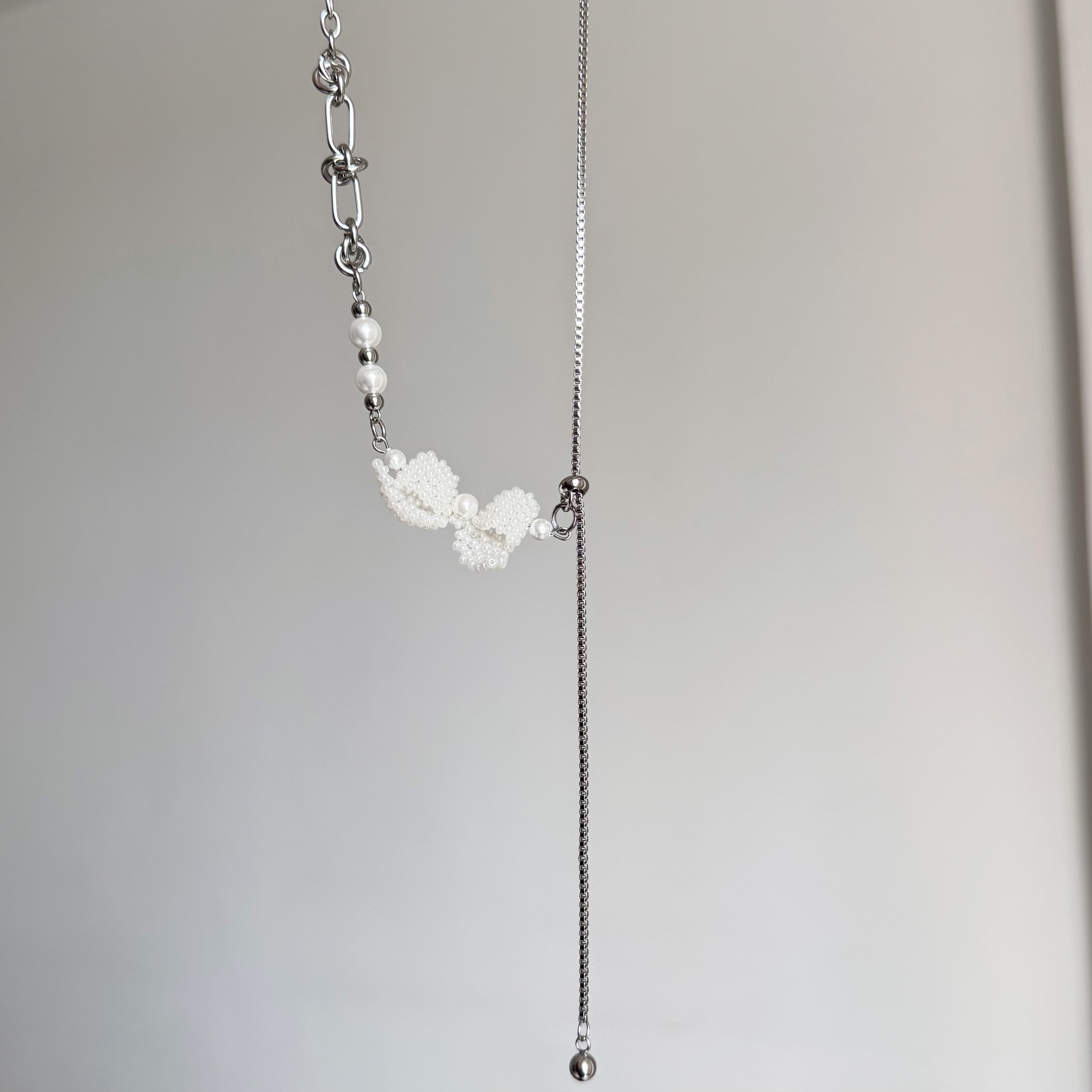 日韩系ins风白色串珠蝴蝶结圈圈打结抽拉项链小众y2k甜酷复古叠戴
