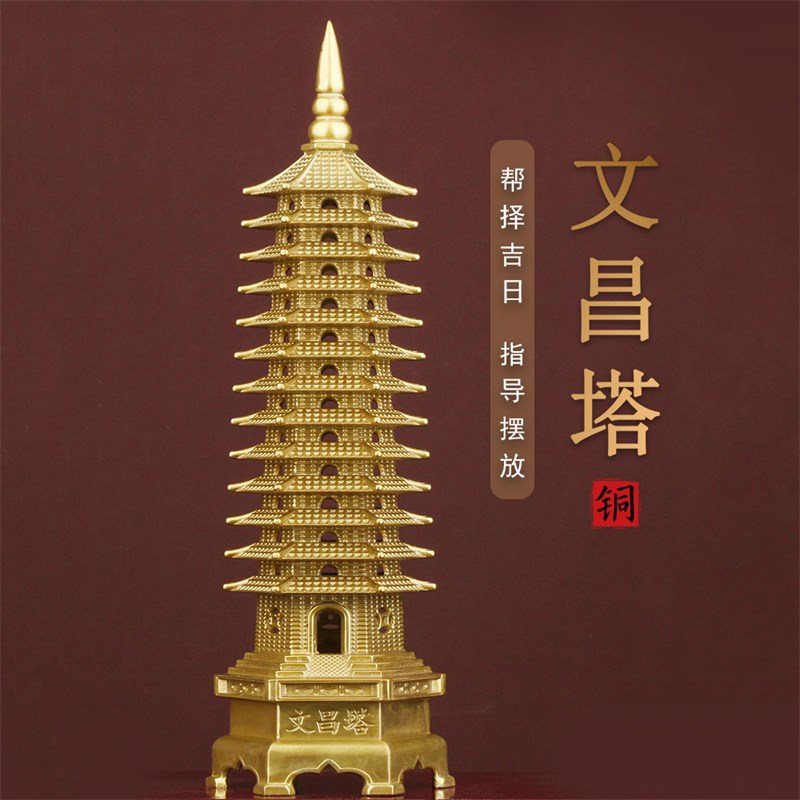 纯黄铜文昌塔13层摆件办公室书房装饰物摆设送学子礼品办公室书桌