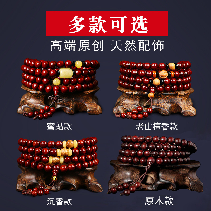 中国风多金星印度小叶紫檀手串男女款108颗佛珠红木手链沉香蜜蜡