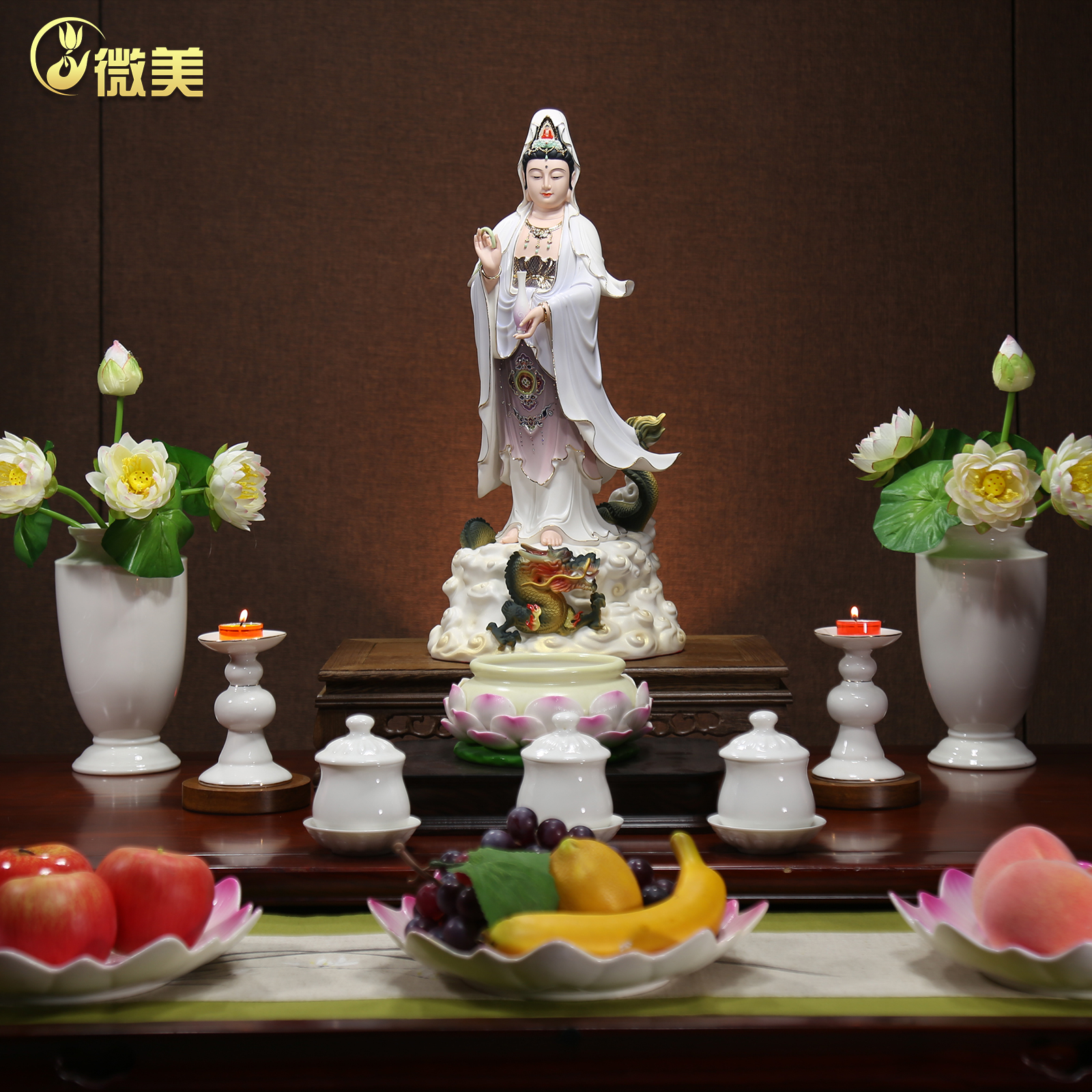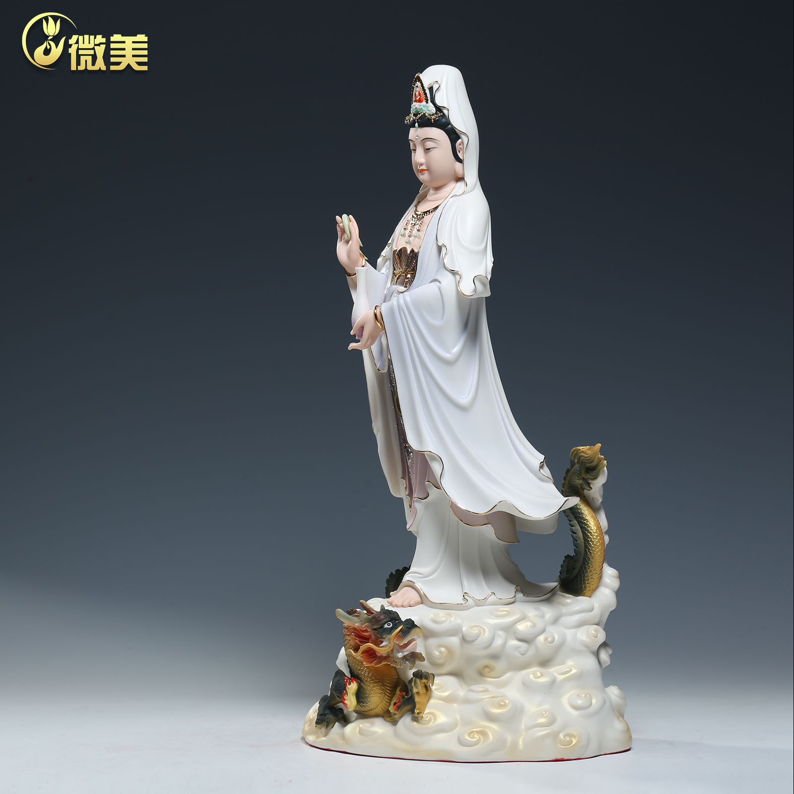 微美陶瓷20至32寸高档御龙观音菩萨像站立龙乘龙骑龙佛像供奉摆件