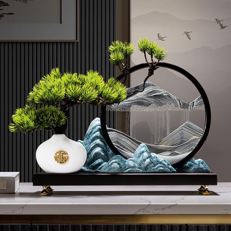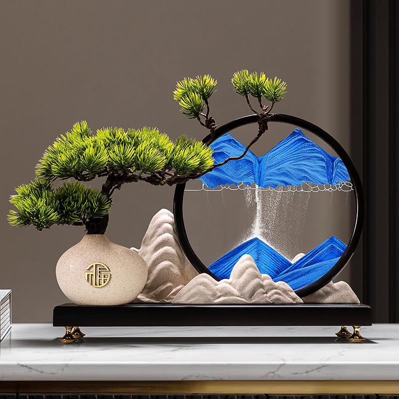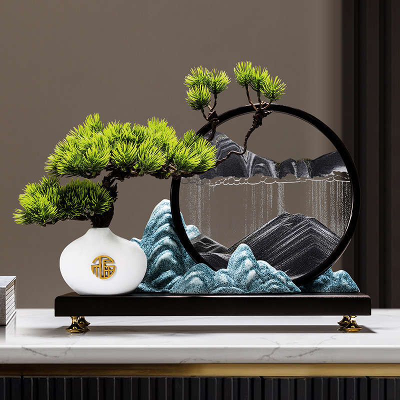 迎客松流沙画摆件客厅玄关开业新居装饰品礼品办公室茶室桌面乔迁