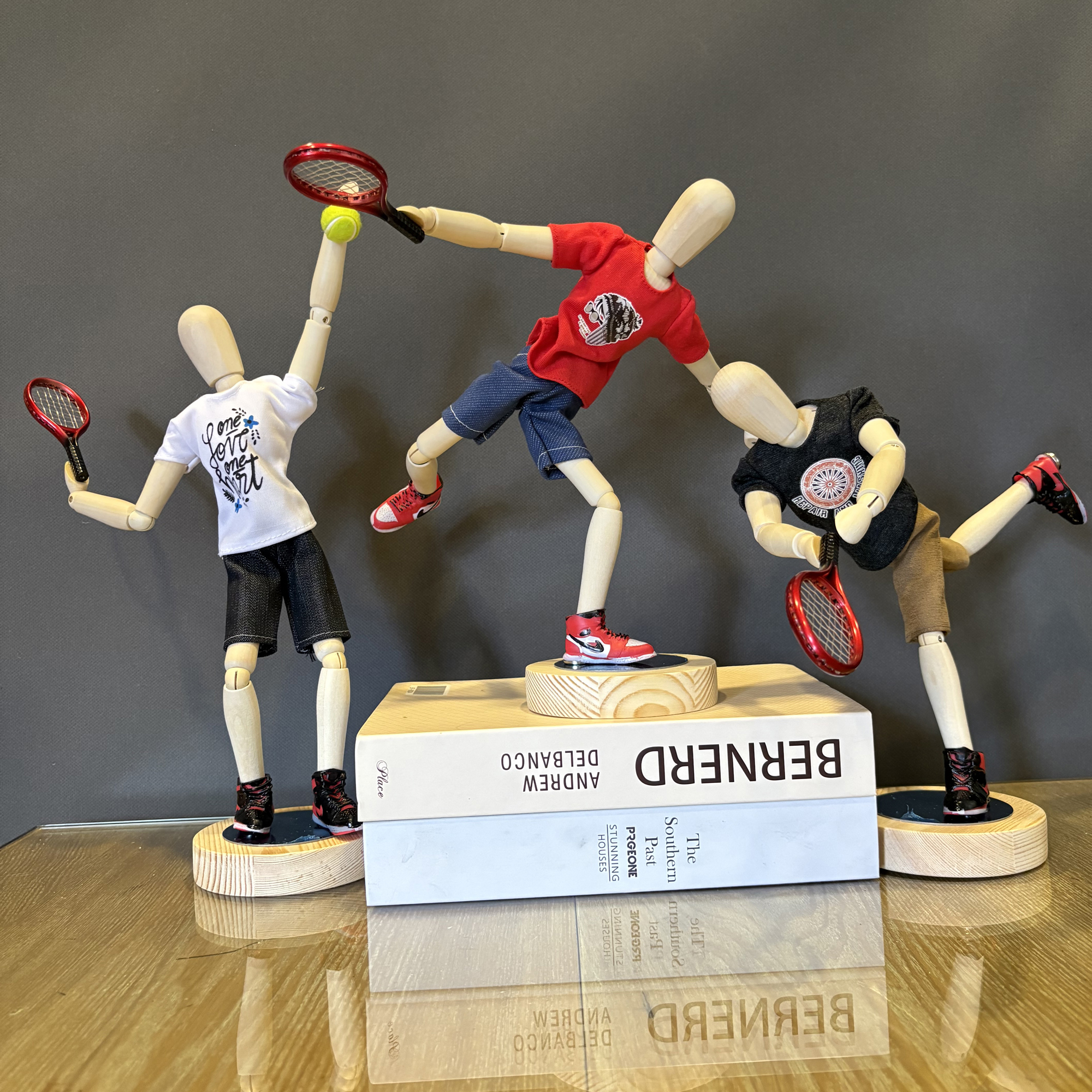 梧棣木人网球运动主题桌面装饰摆件打网球人运动人物造型礼品