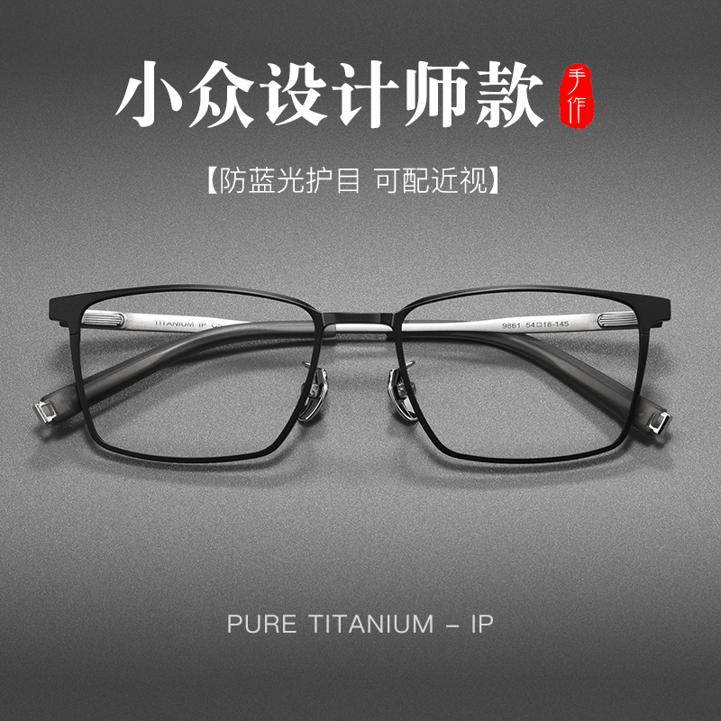 超轻纯钛设计师近视眼镜框男款可配度数散光商务方框网上配镜眼睛