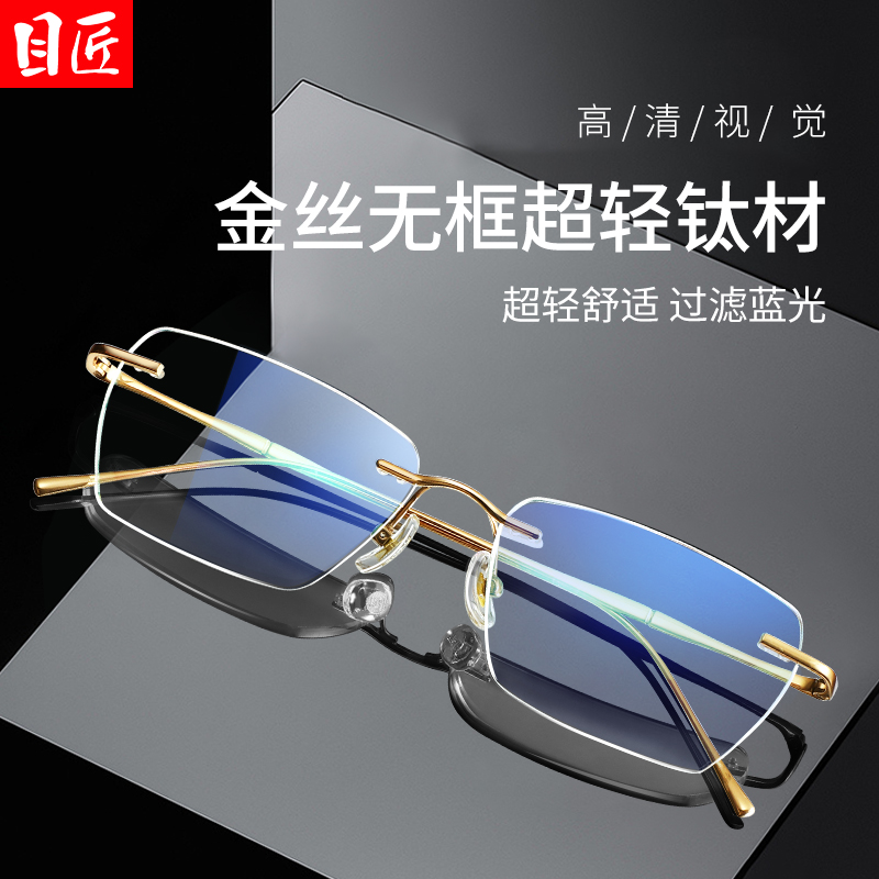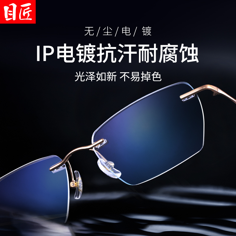 超轻纯钛金丝无框近视眼镜框男款可配度数斯文败类无边框金边镜架