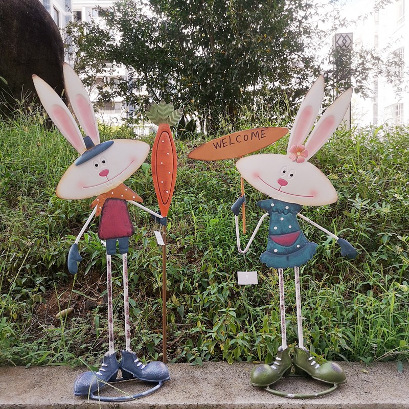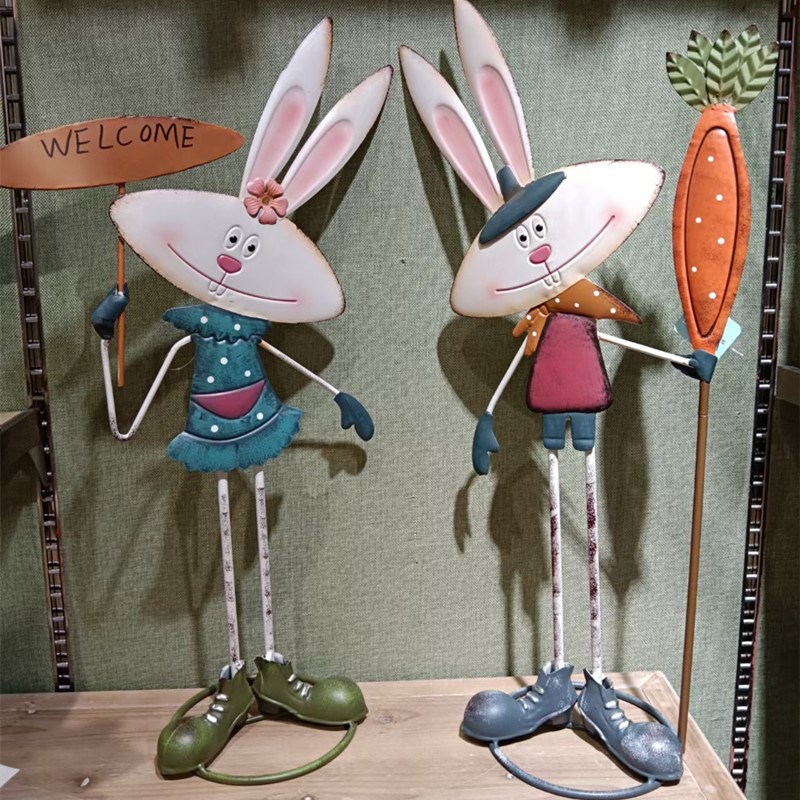 美式做旧铁艺兔子花园装饰摆件户外庭院阳台卡通可爱小动物装饰品