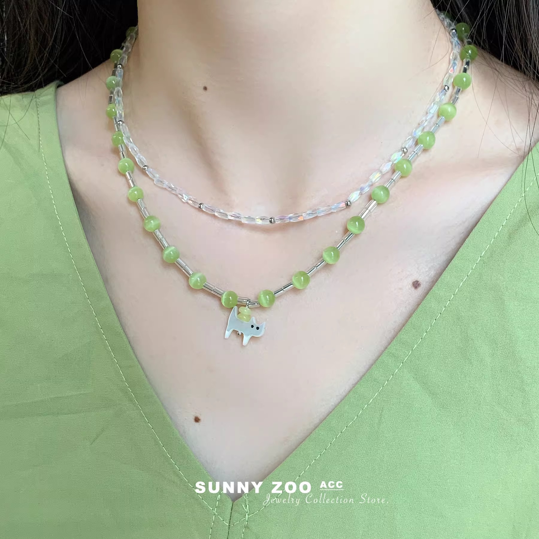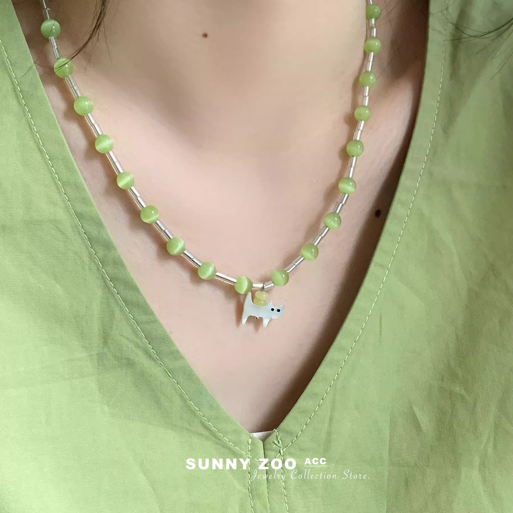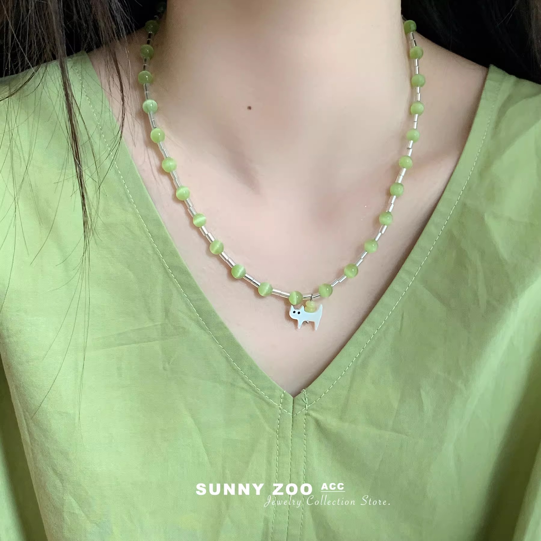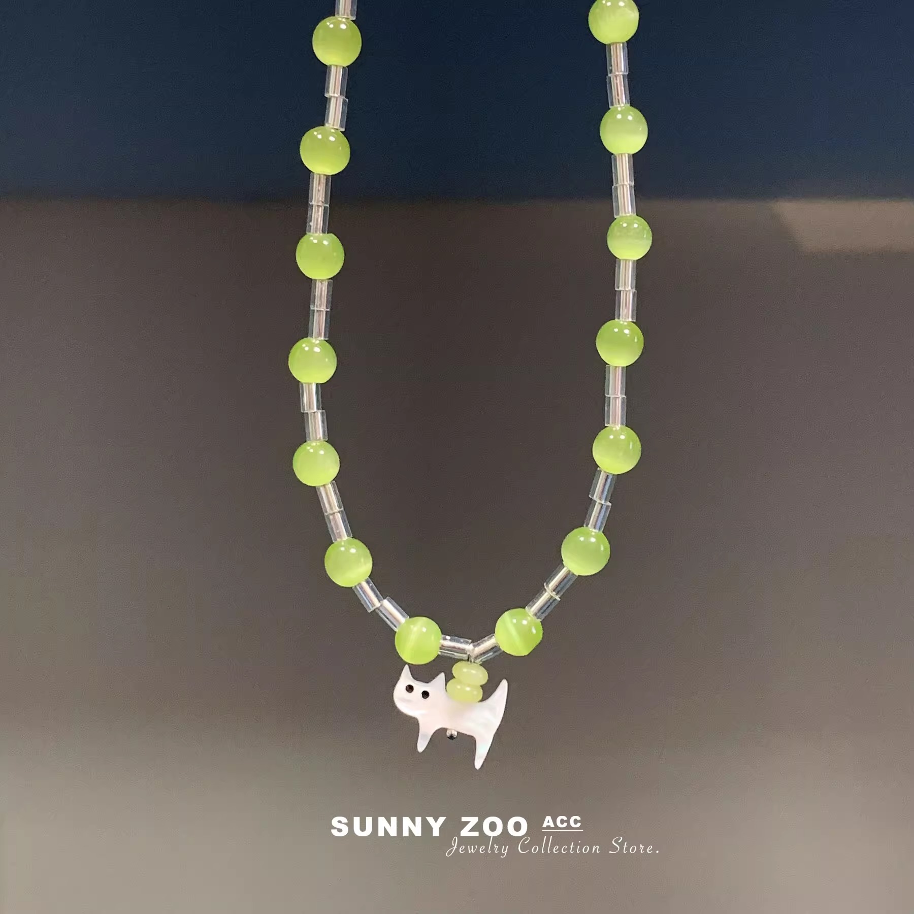绿色小猫串珠项链女2025新款爆款高级感轻奢小众独特气质锁骨颈链