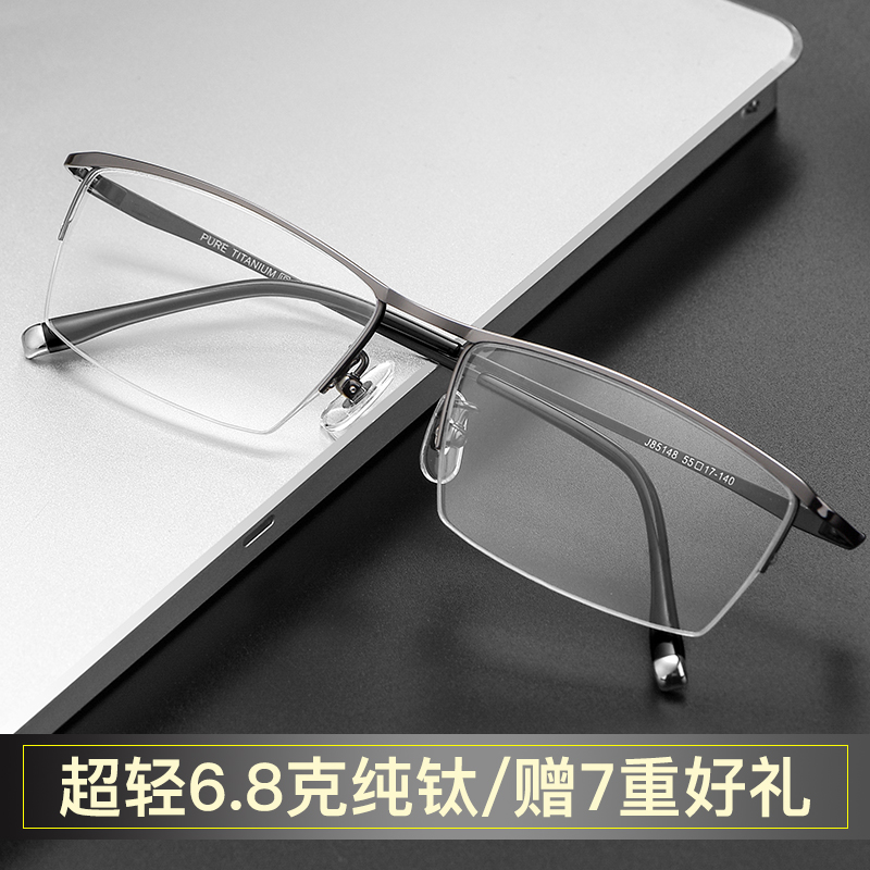 近视眼镜男有度数纯钛超轻舒适高清商务无度数半框眼镜框可配度数