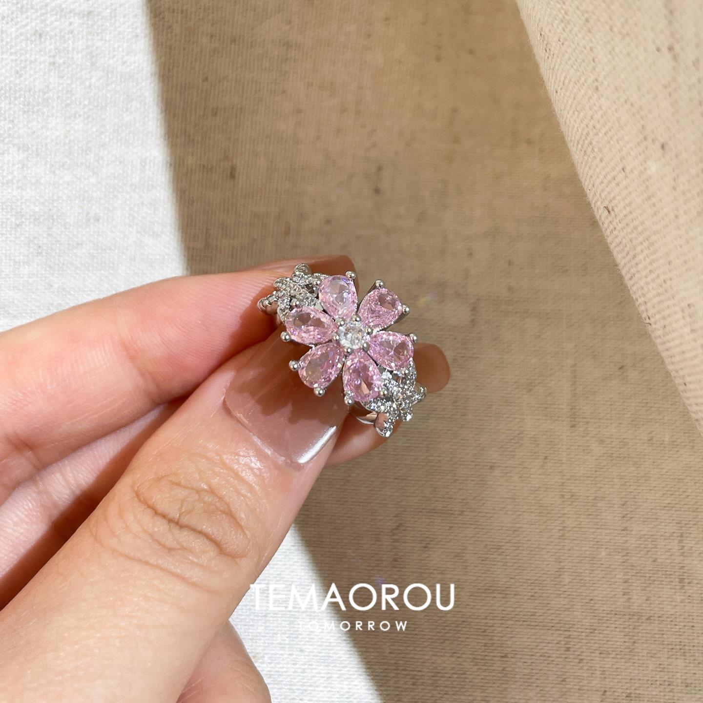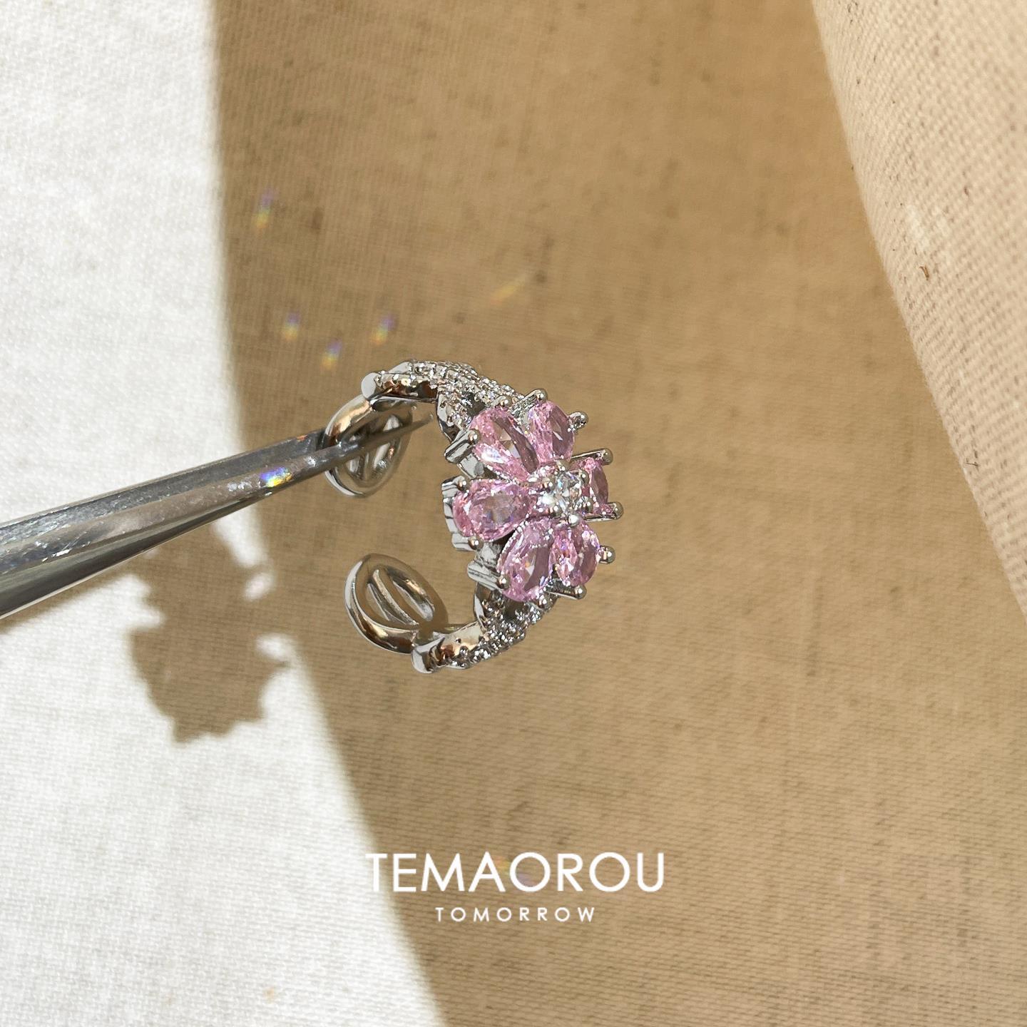 之恋~甜美小粉钻镂空边闪钻戒指女小众设计感食指戒指环