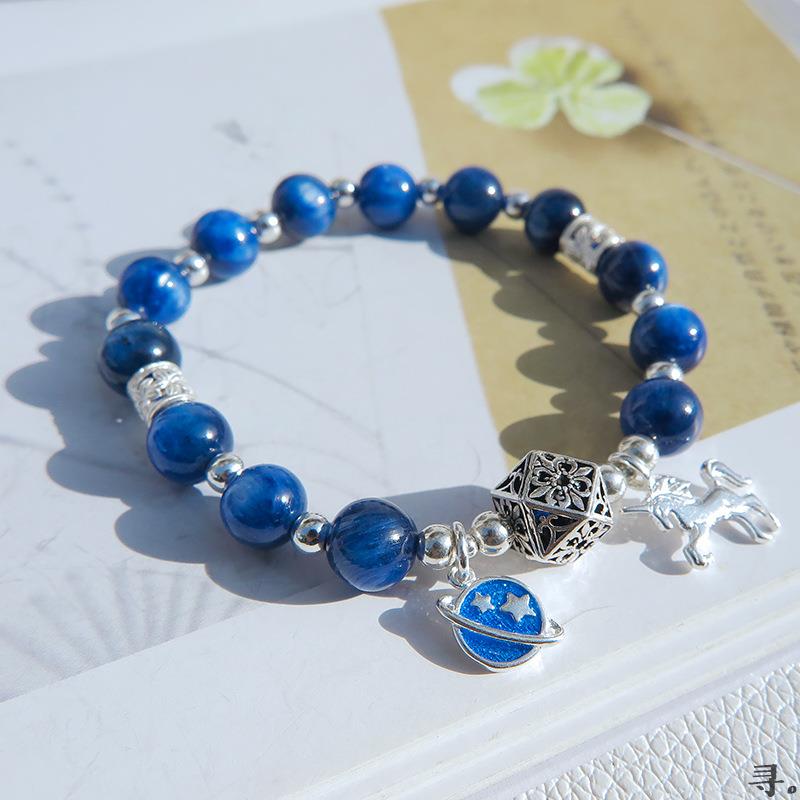 天然蓝晶石手链925银以梦为马蓝色星球手链蓝水晶手串幽蓝