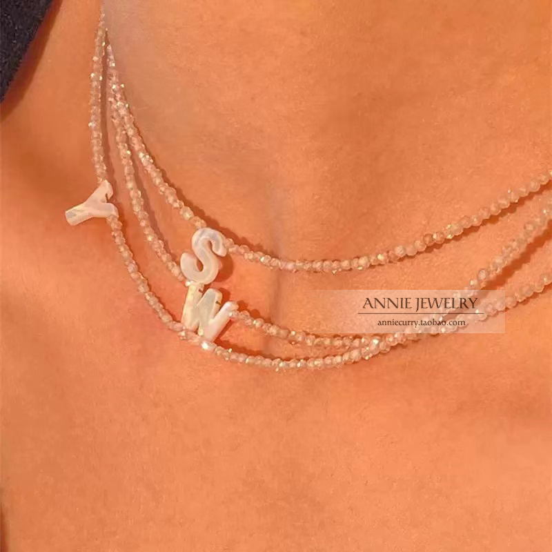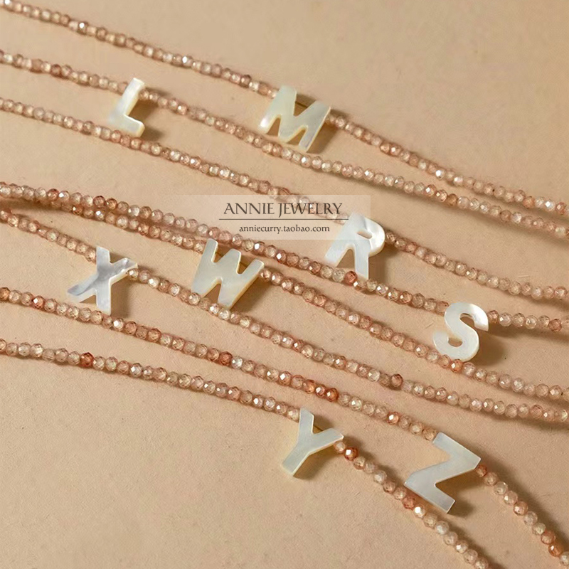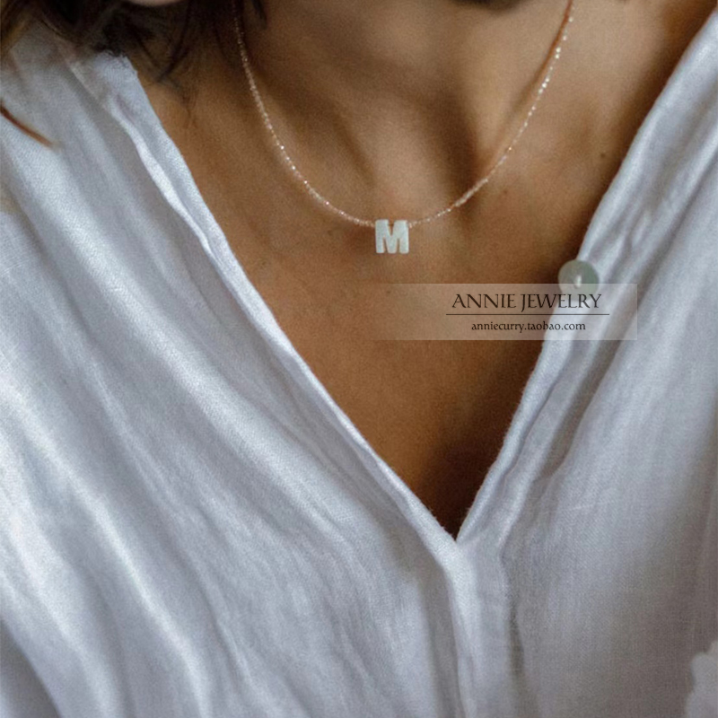 Annie Jewelry温柔精致简约气质 天然香槟金锆石珍珠贝母字母项链
