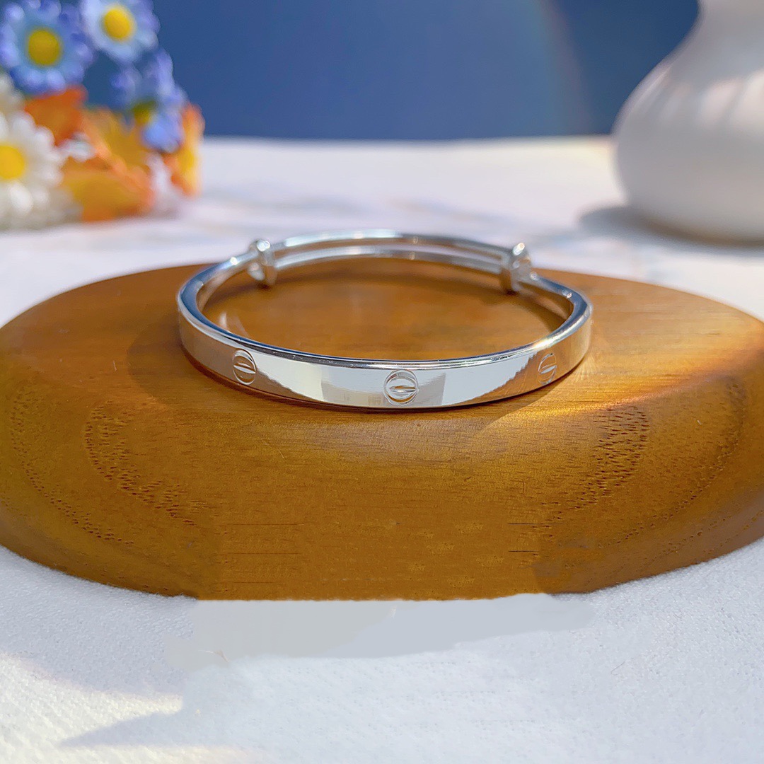 纯银999.9足银童镯精工推拉四方车花小童中童男女宝宝儿童手镯