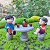 覆古迷你中式古风小圆桌小石桌石凳古建筑模型盆景微景观造景摆件