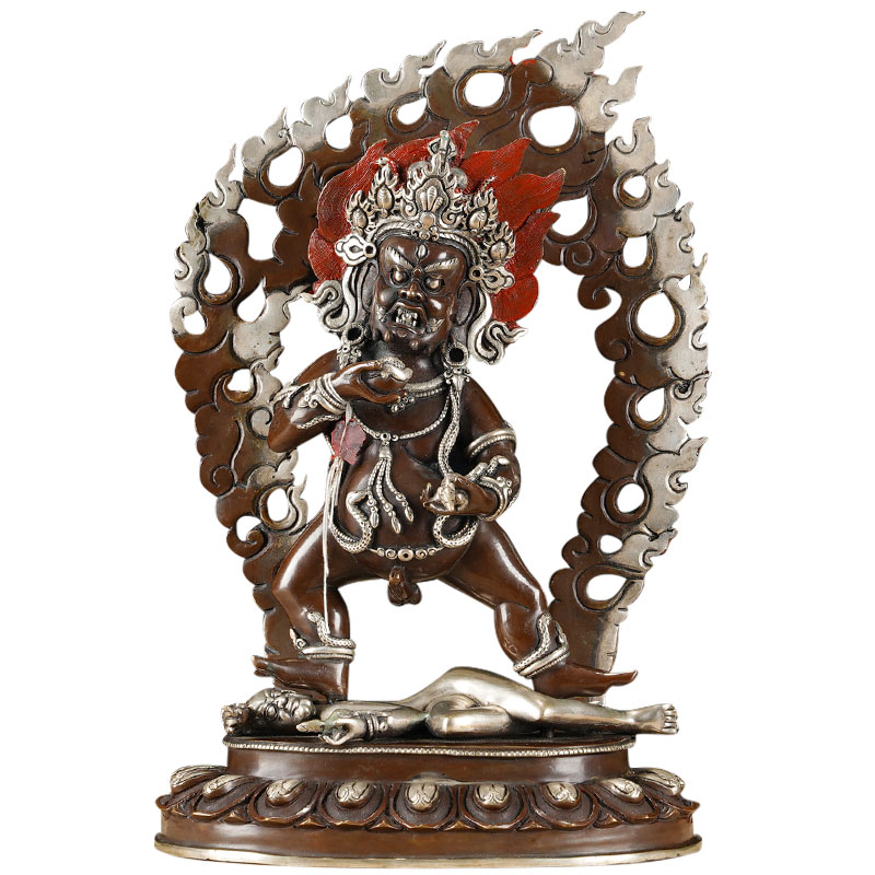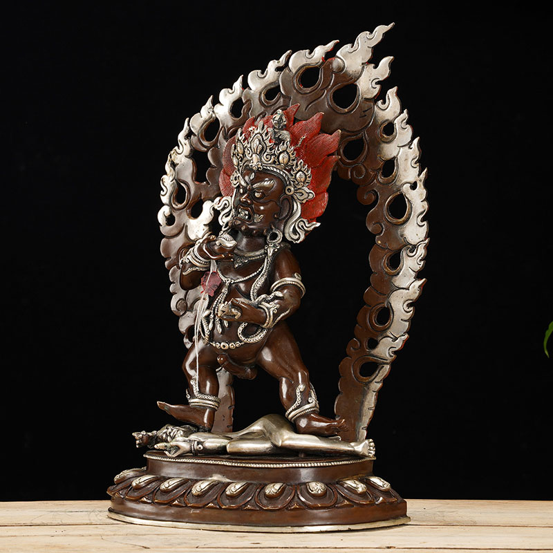 黑财神铜像10寸尼泊尔铜镀银手工家用五路财神用品摆件