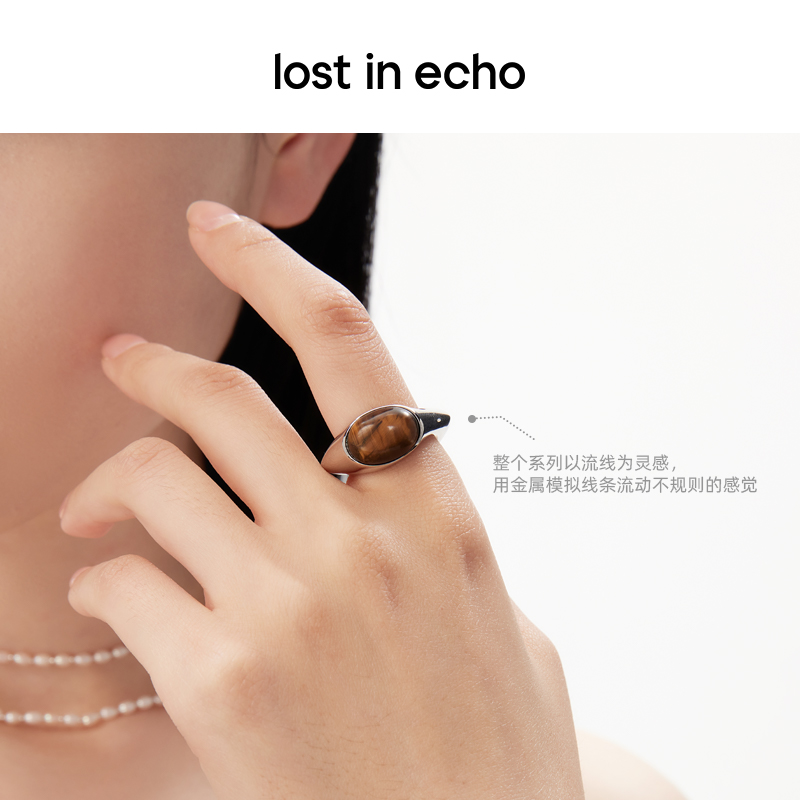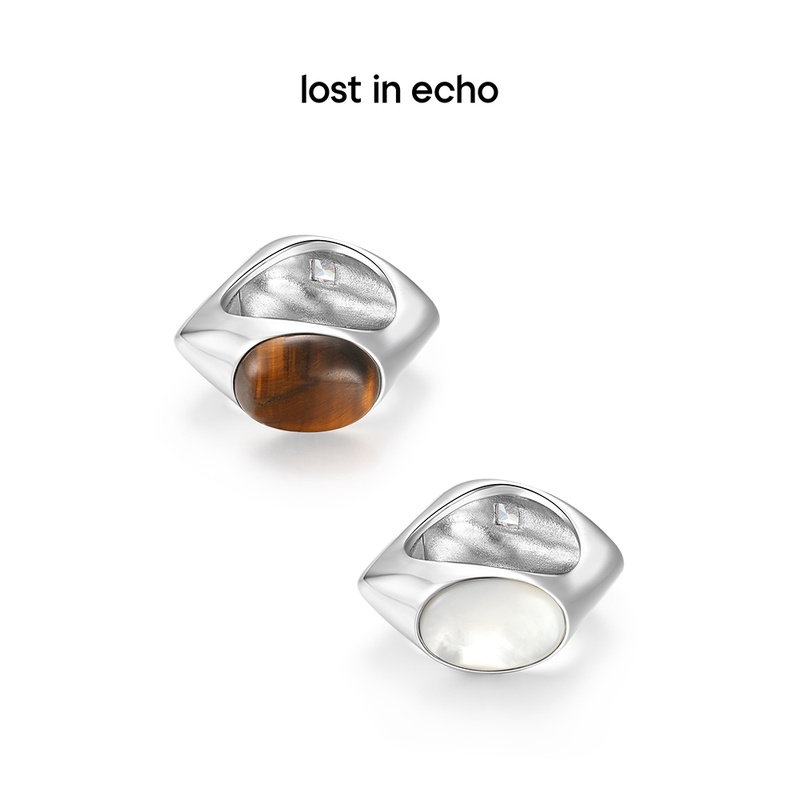 [送女友]lost in echo轻奢小众设计感镶嵌圆顶双面戒指指环女