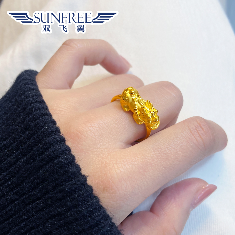 黄金招财进宝貔貅戒指3D硬足金999口含元宝指环尾戒对戒男女礼物