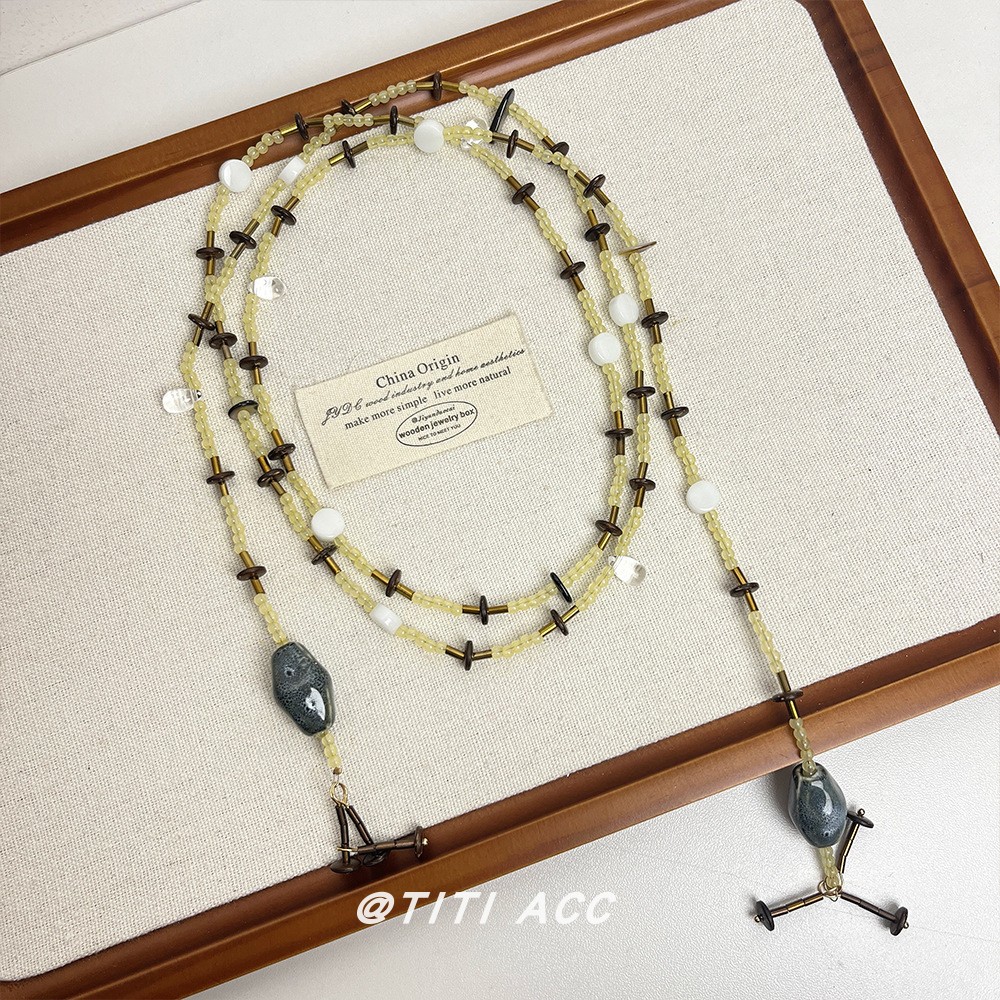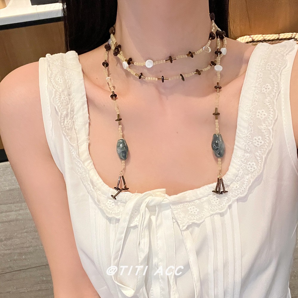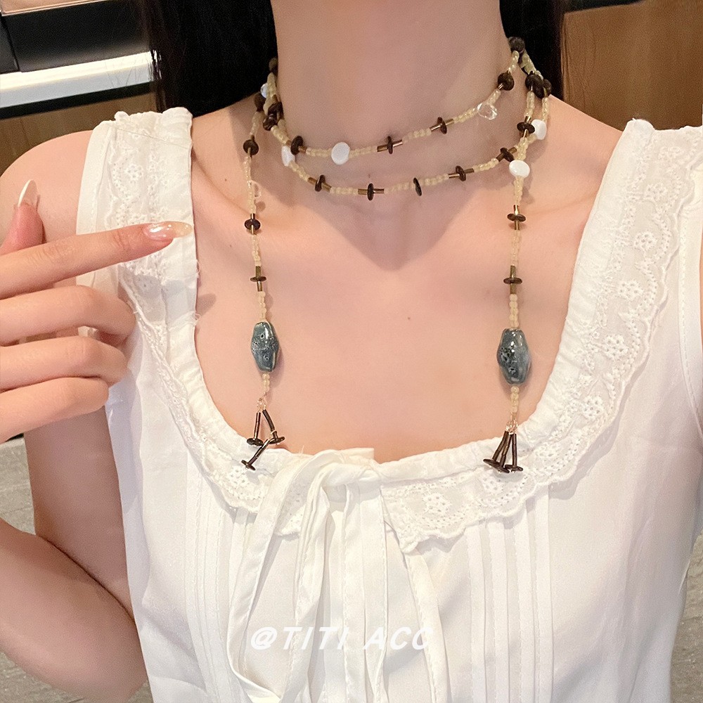 新中式茶晶串珠长款项链女小众设计感高级叠戴锁骨链时尚颈链配饰