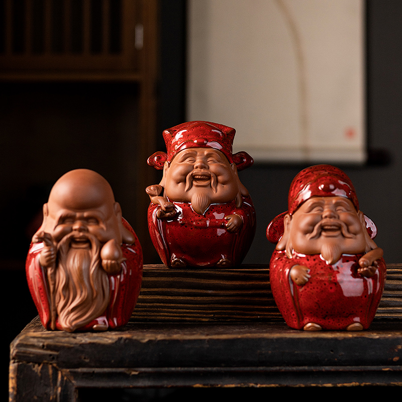 新中式创意招财财神陶瓷摆件家居饰品喜庆可爱桌面工艺品开业送