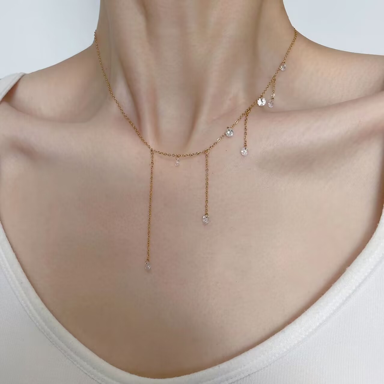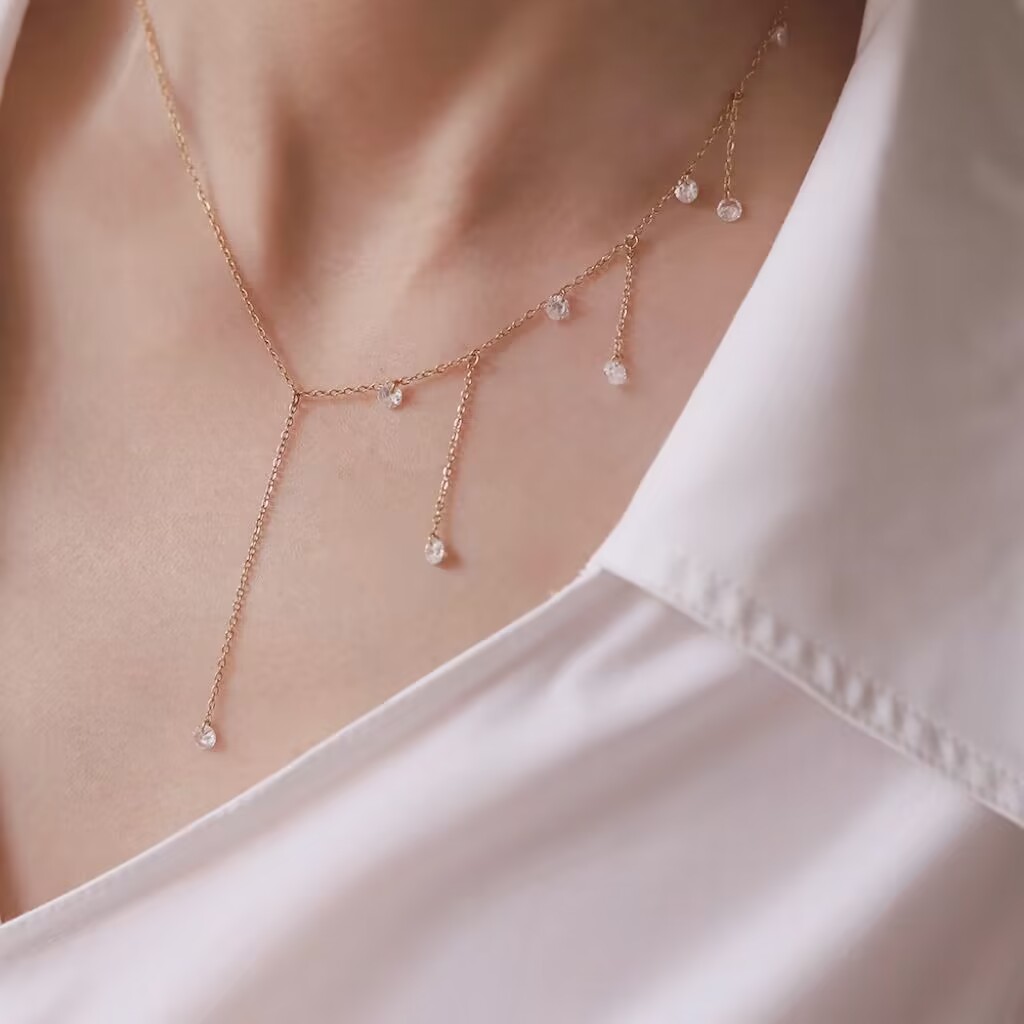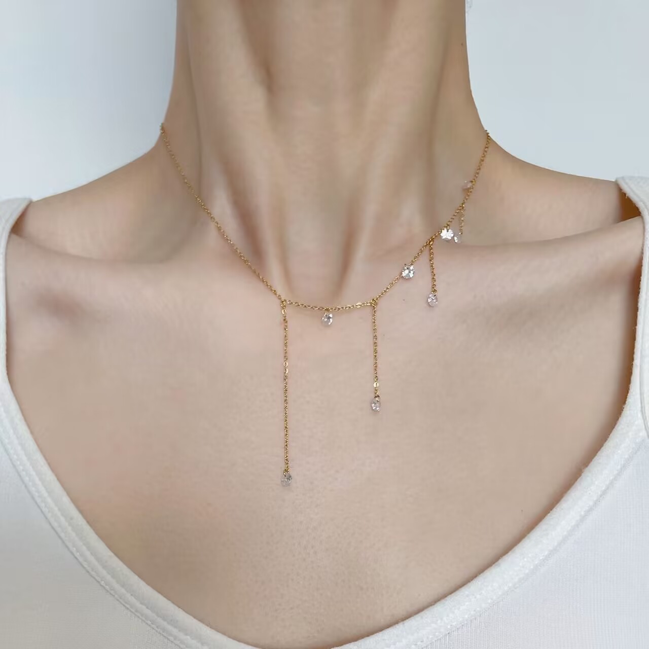 超修饰脖颈的流苏项链,好闪好温柔锆石仙气质感高级轻盈日常女