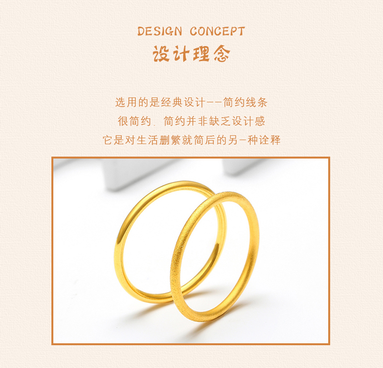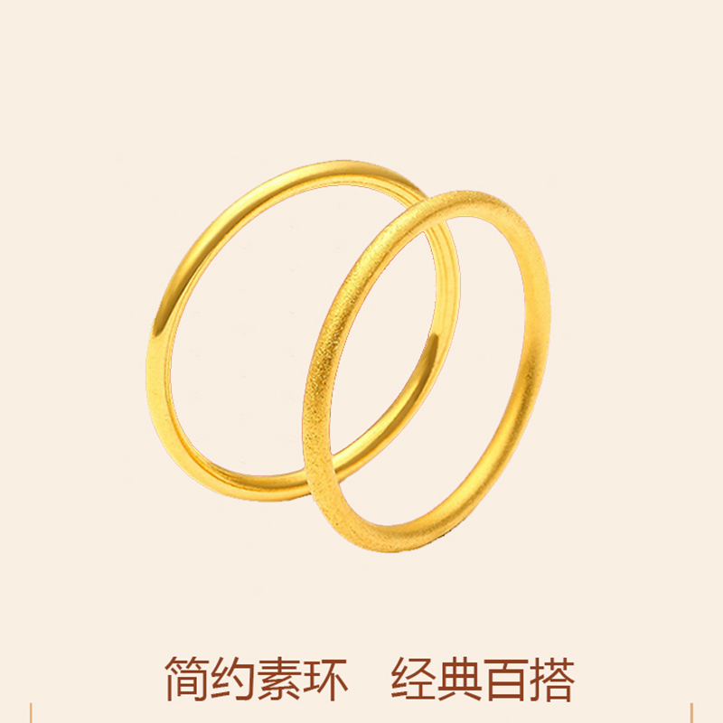 黄金素圈戒指足金999男士戒指情侣对戒女结婚食指光面指环送女友