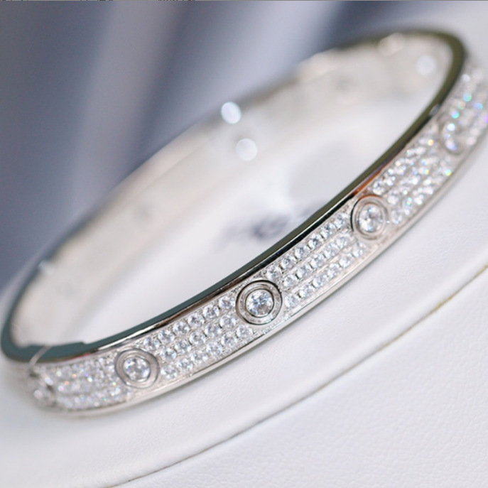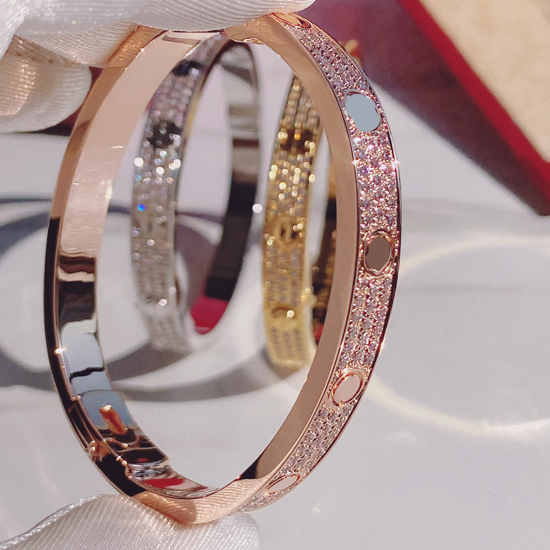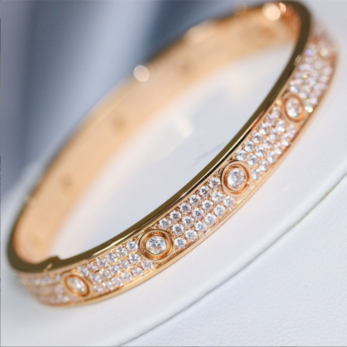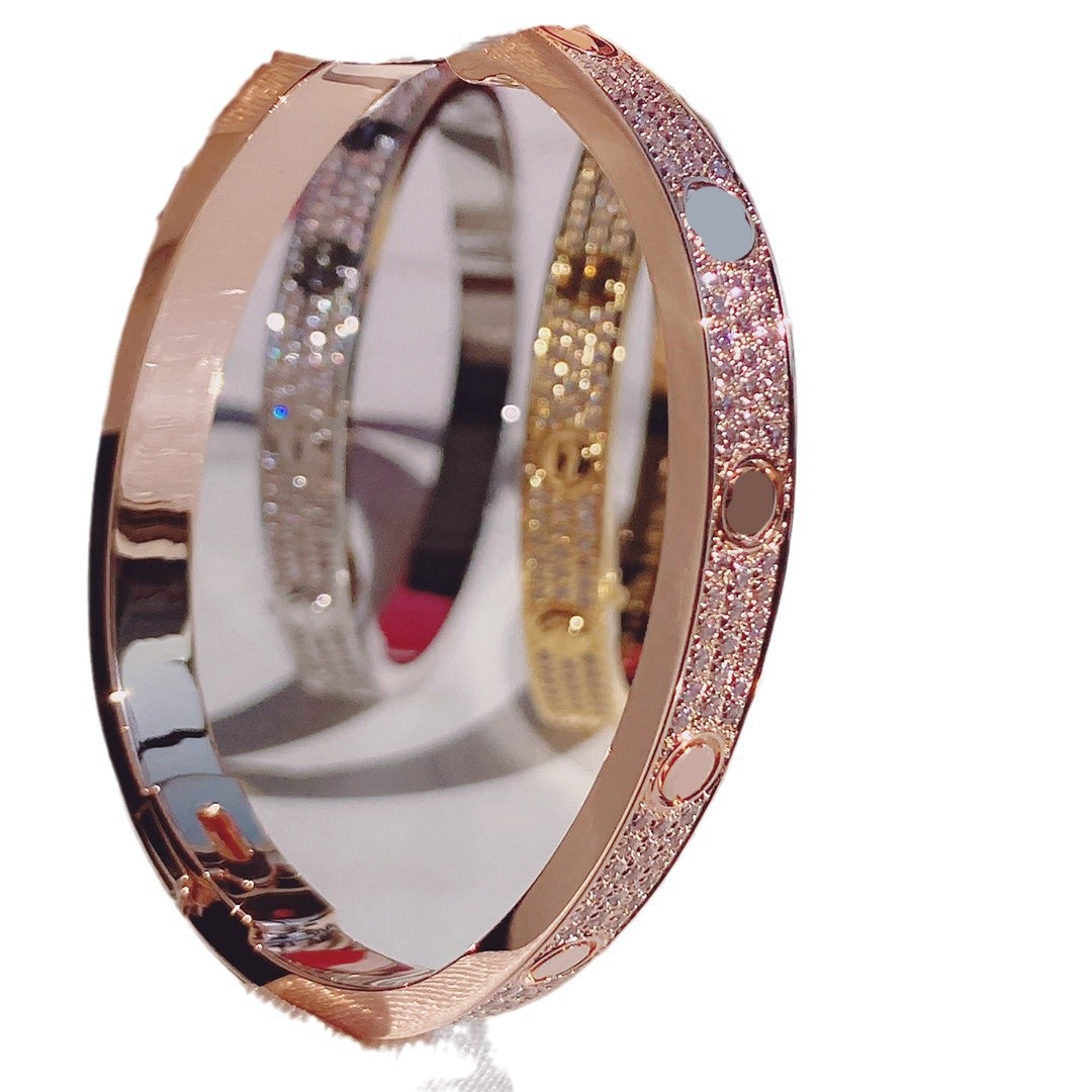 V金宽版卡家满天星高版本手镯精工三排钻镀18K玫瑰金手环送女朋友