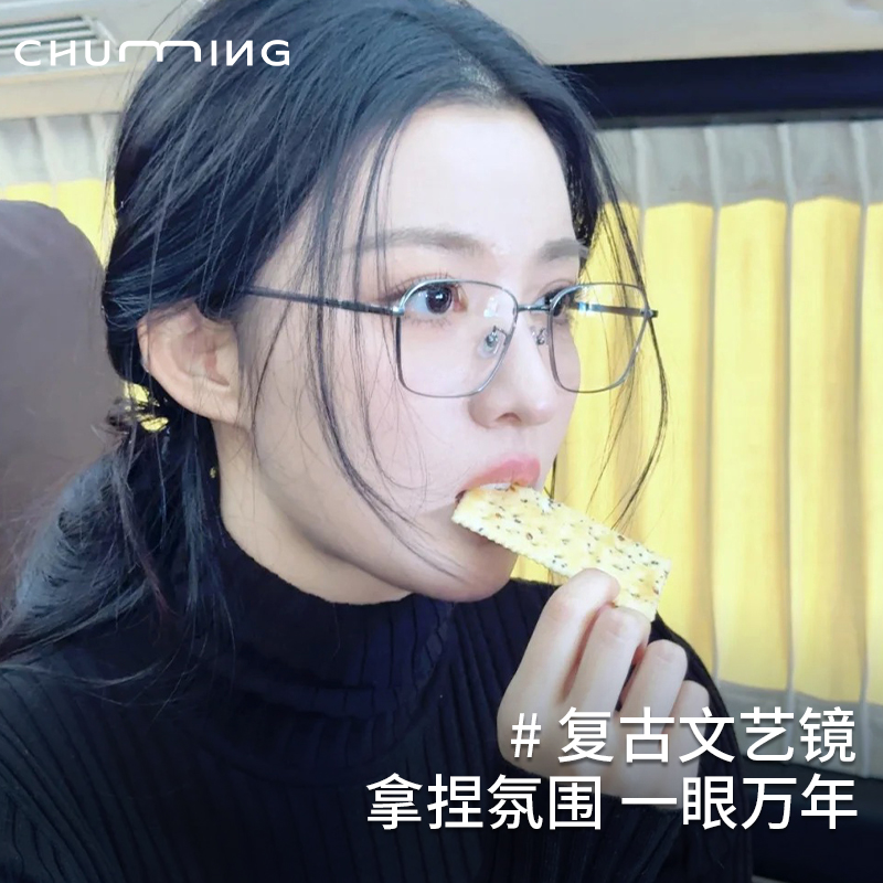 王楚然同款清冷感银丝方框眼镜女近视可配度数显脸小眼睛超轻钛架