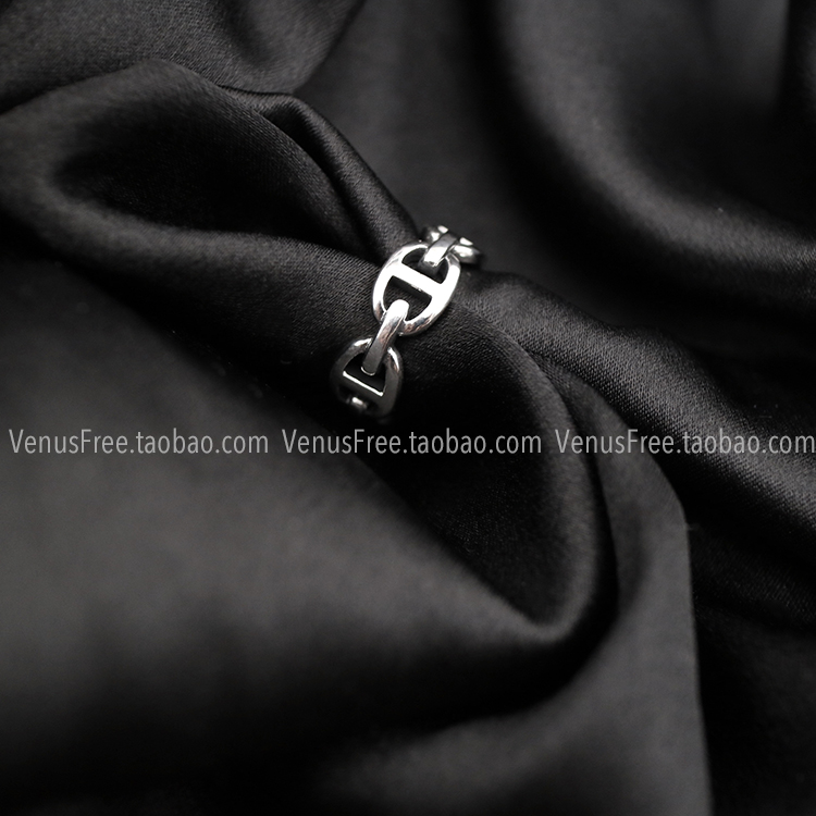 ins同款 做旧简约925纯银烧银猪鼻戒指/宽竖条戒指可选 韩国欧美