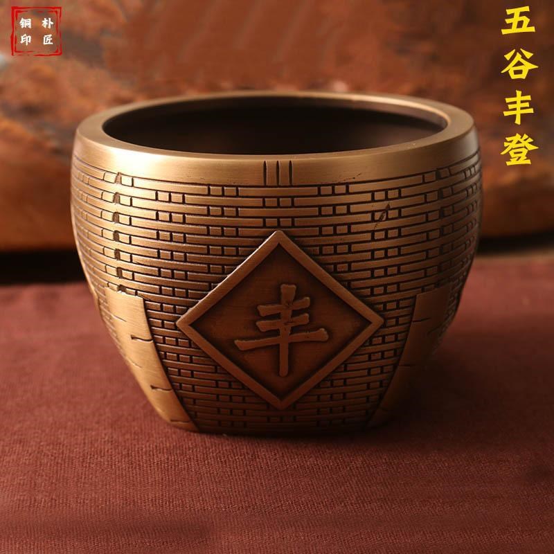 家居开业乔迁子缸五谷丰登旺纯铜客厅斗N升装饰铜财有摆件包邮