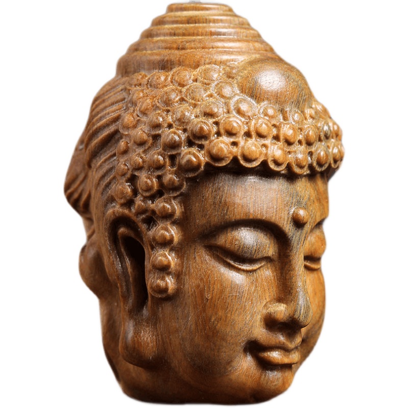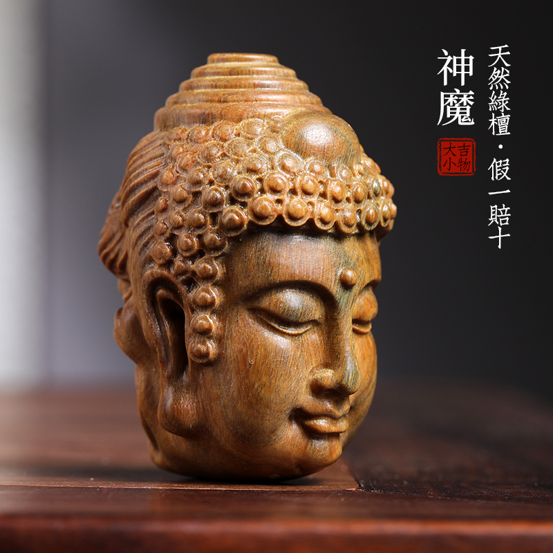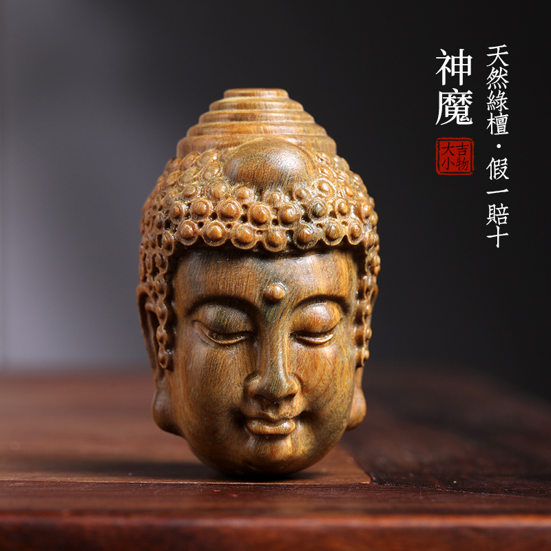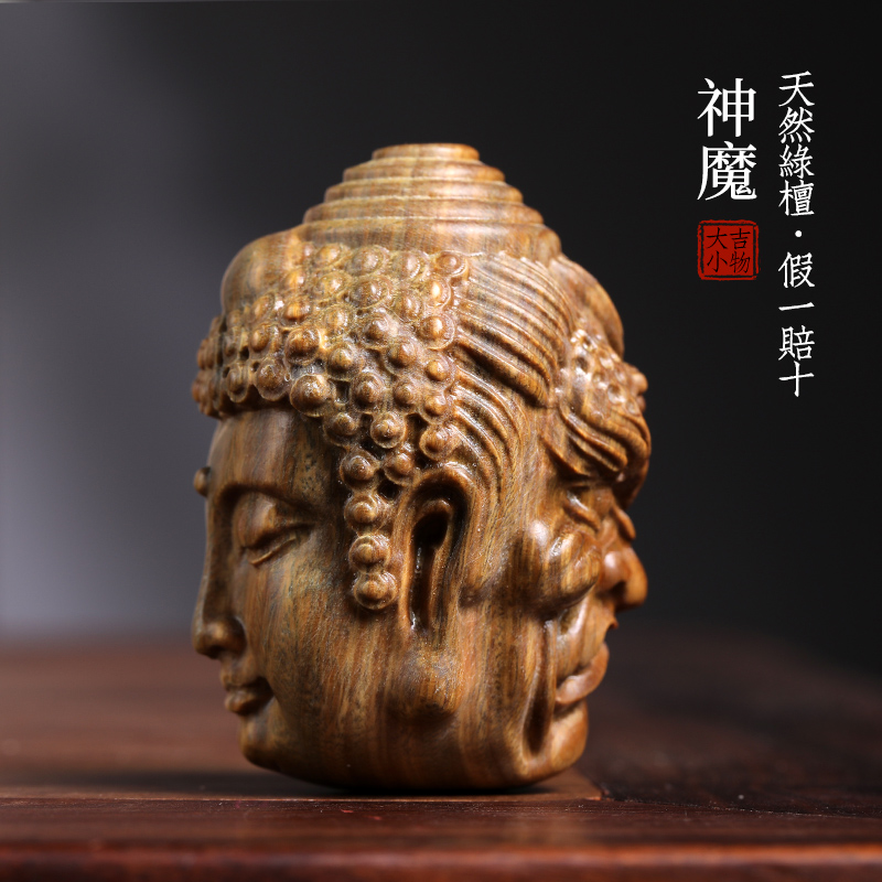 天然紫檀玉檀绿檀木一念神魔佛头木雕摆件转运文玩小挂件手把件