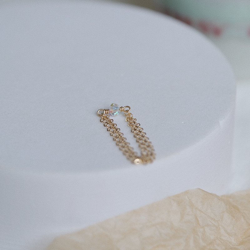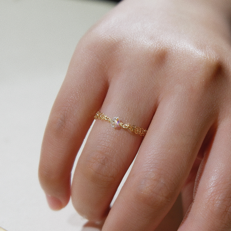 当前位置:首页>商品详情>UNELGE简约精致小众设计感链条包金水晶戒指气质百搭时尚个性指环