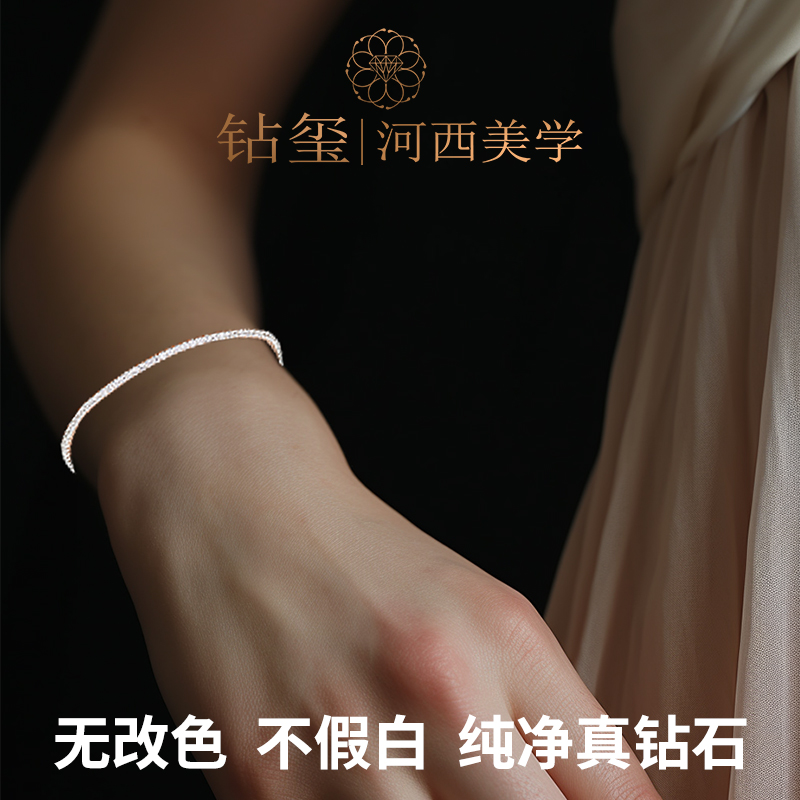 【培育】光舞 钻玺铂金满钻手链实验室合成培育人造人工钻石女