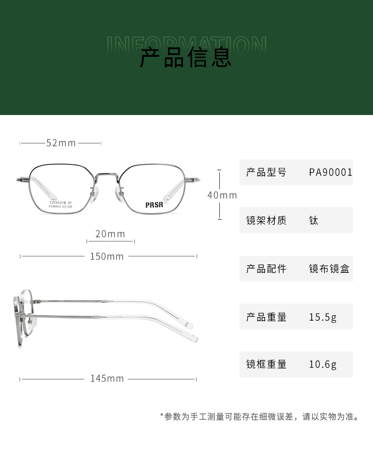 PRSR新款精品帕莎眼镜框时尚纯钛超轻近视镜架日韩风复古PA90001