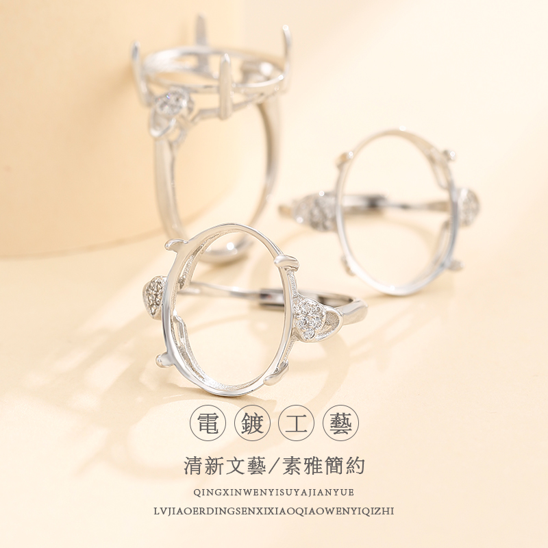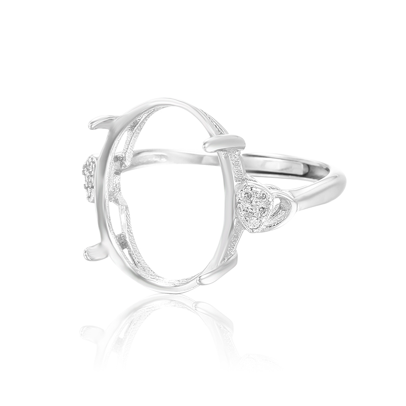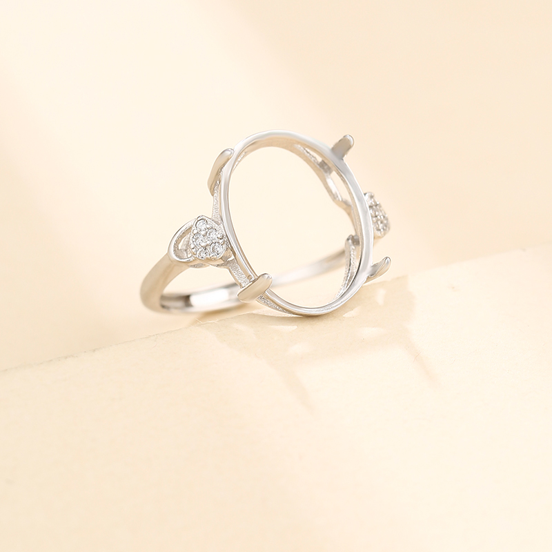 致闺蜜S925纯银戒指空托女 爱心镶钻日韩网红戒托椭圆13*17mm银托
