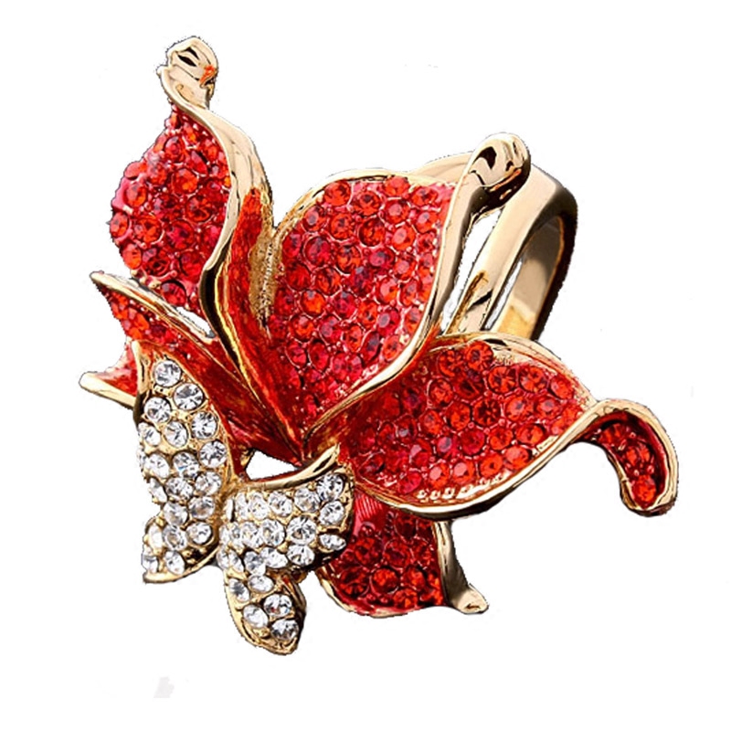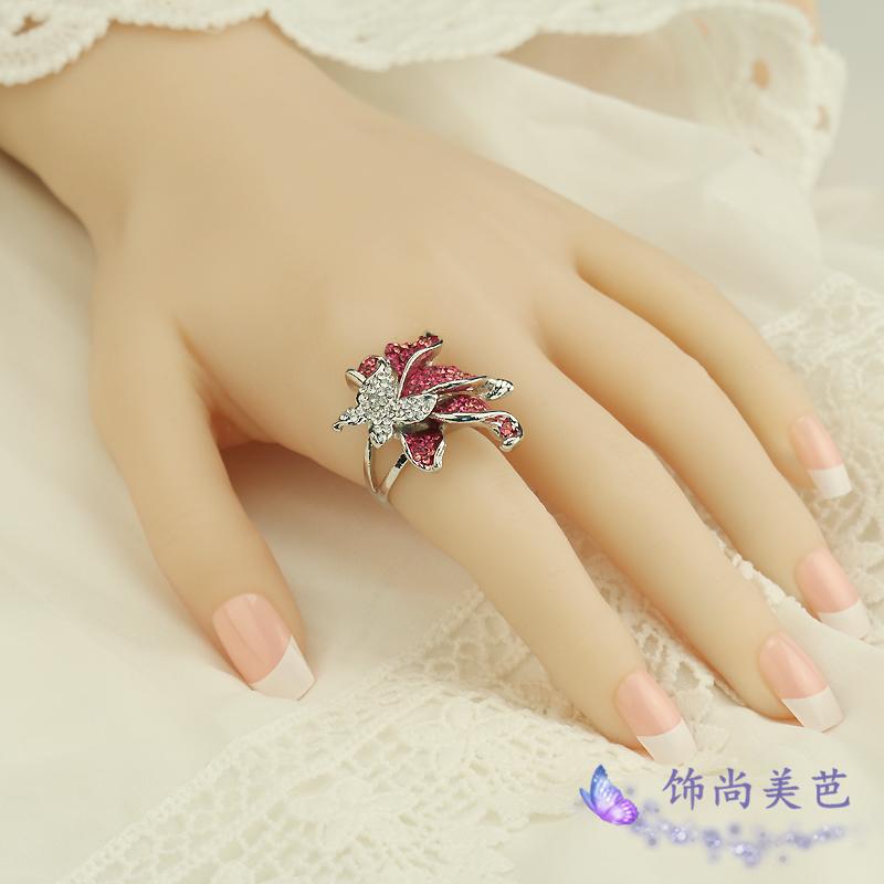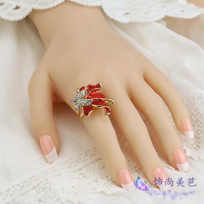 红色韩时尚蝴蝶彩钻花个性潮人大戒指女生夸张食指玫瑰金简约尾戒