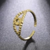 热销时尚简约切割珠链眼睛18k金不锈钢开口食指戒指饰品