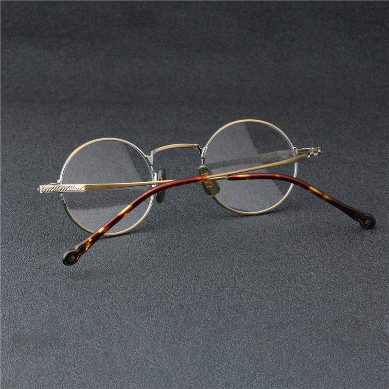 内藤熊八作日本超轻钛手作眼镜复古圆框高度数近视眼镜架 N-045