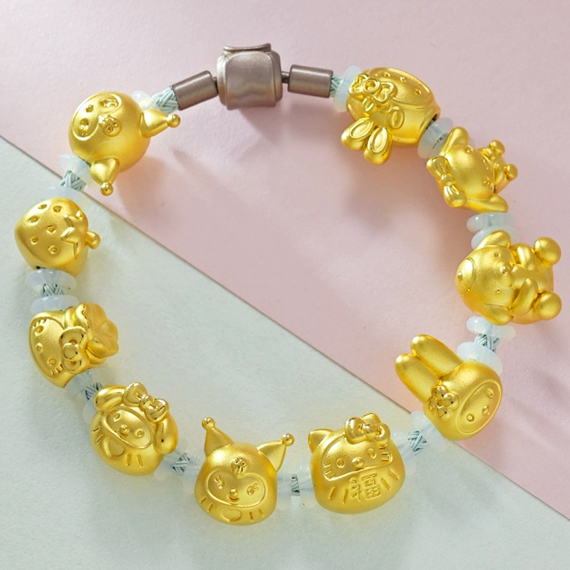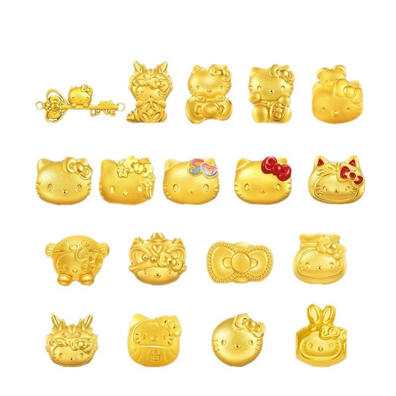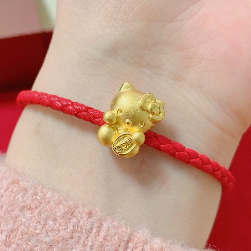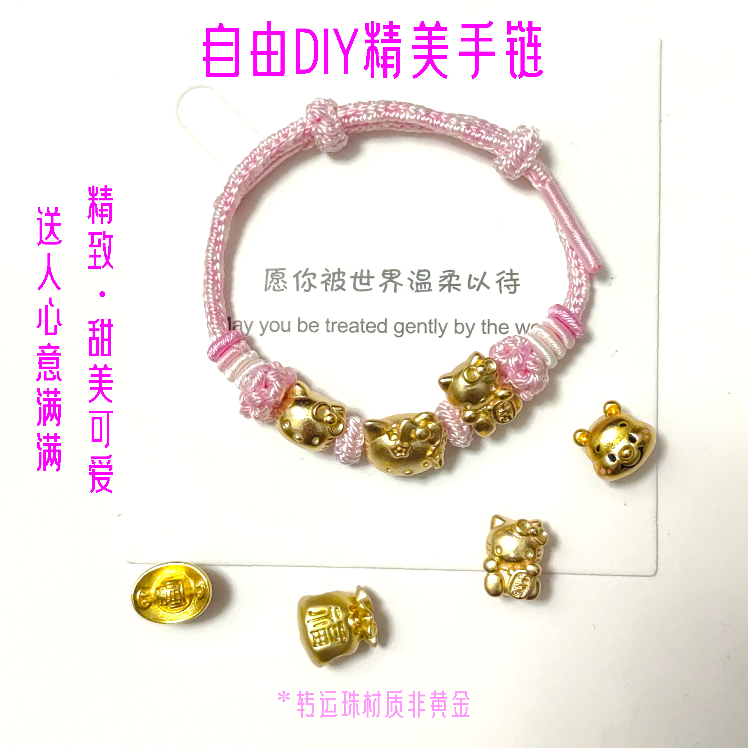 凯蒂猫沙金转运珠高保色串珠吊坠3D硬金招财猫DIY手链配件送闺蜜