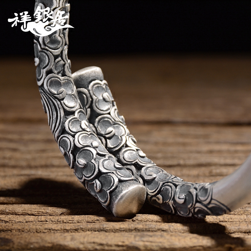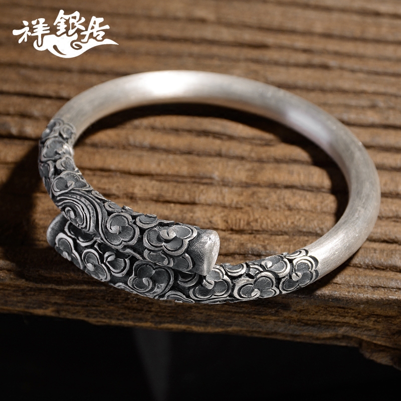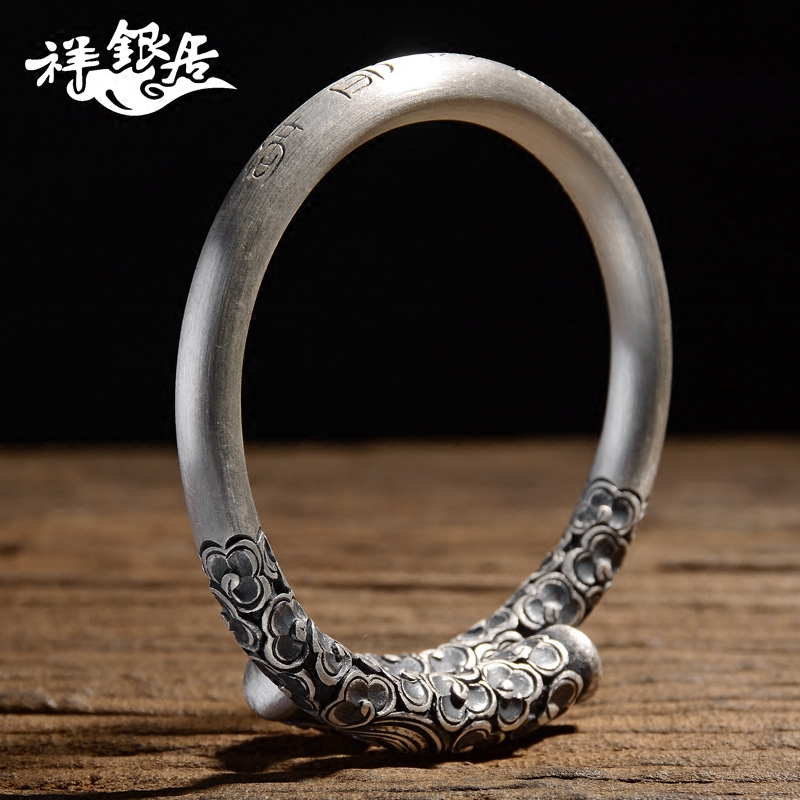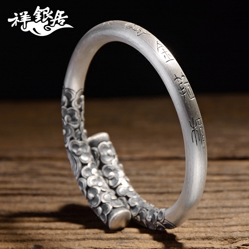 祥银居黑神话悟空手工复古做旧浮雕圆柱错开口金箍棒手镯.珍藏