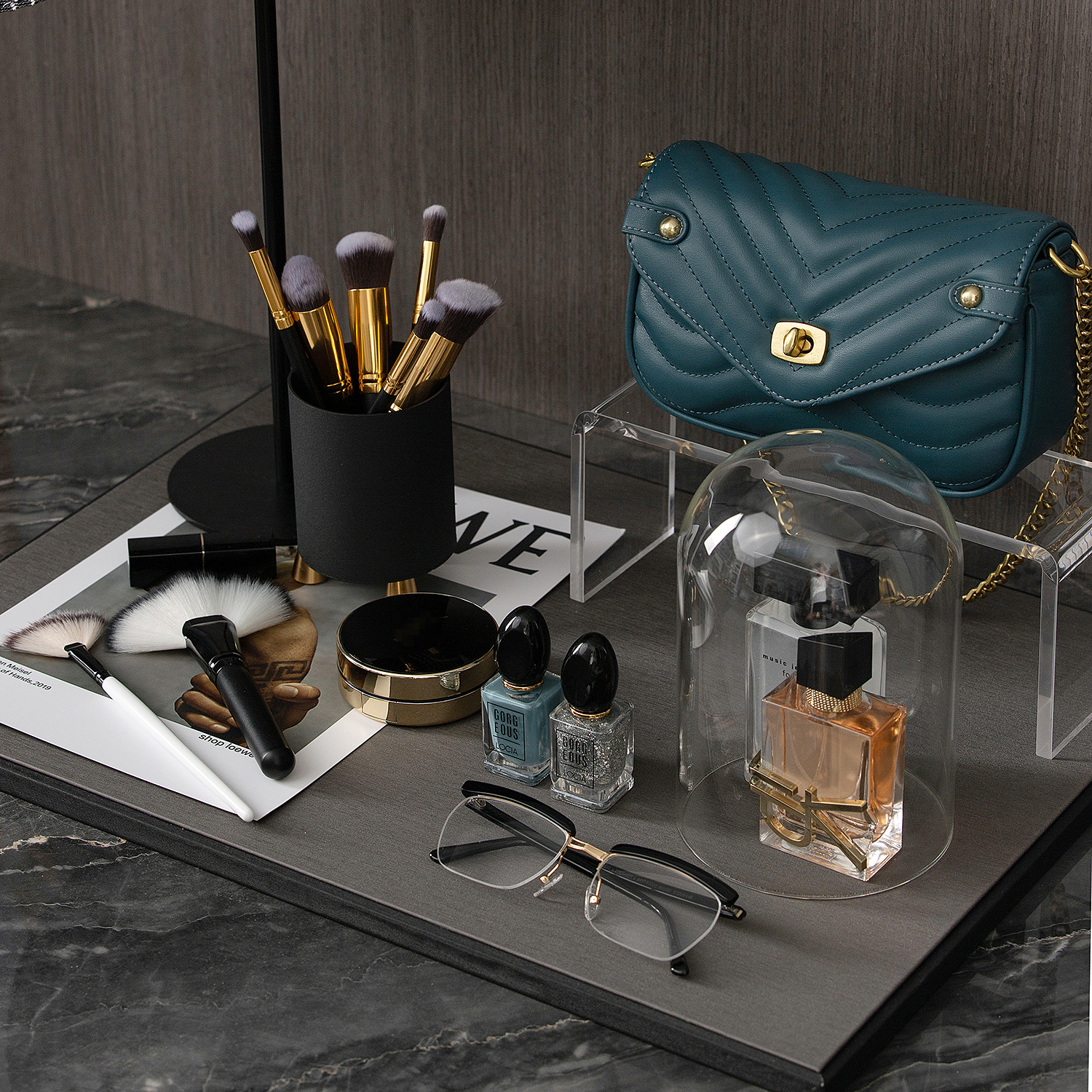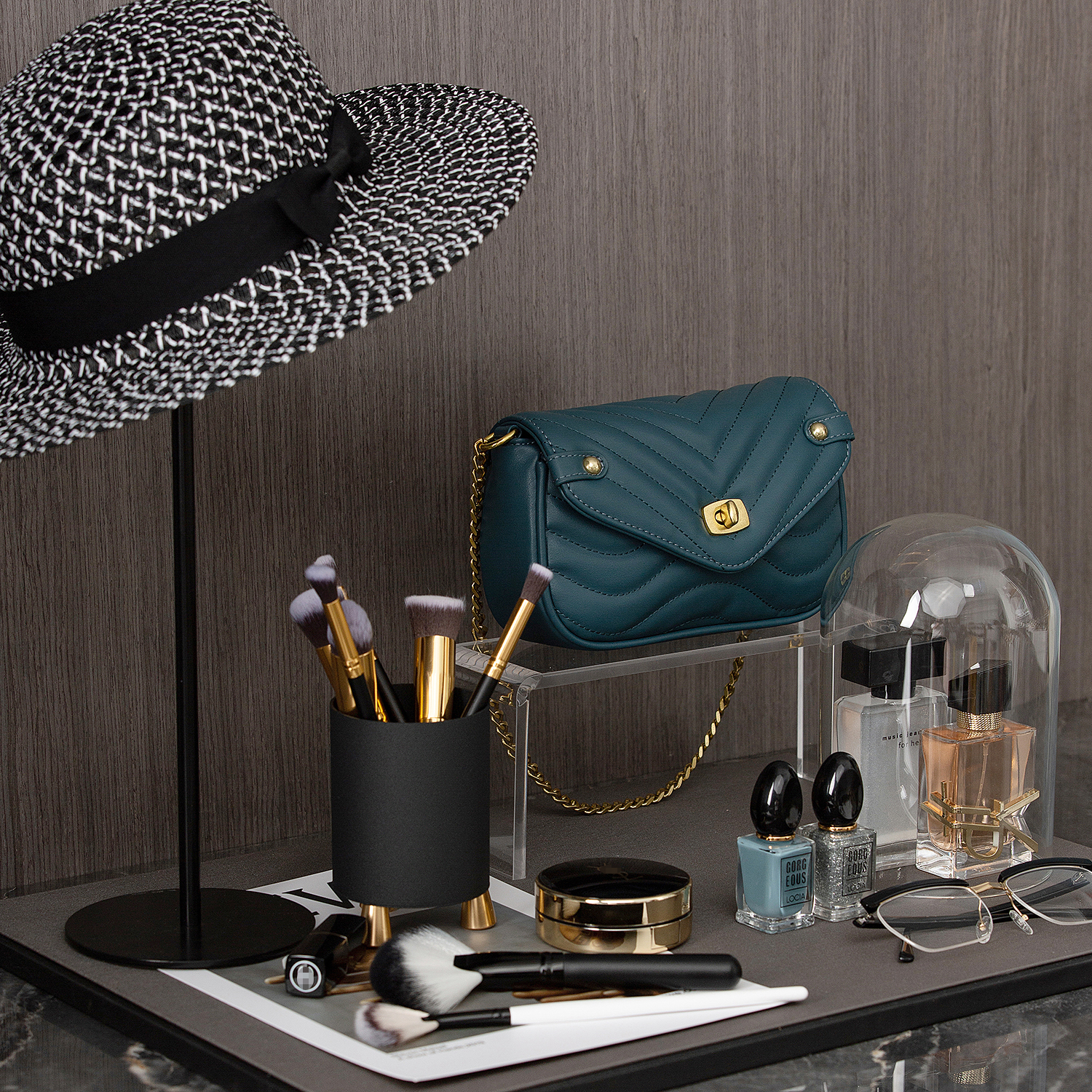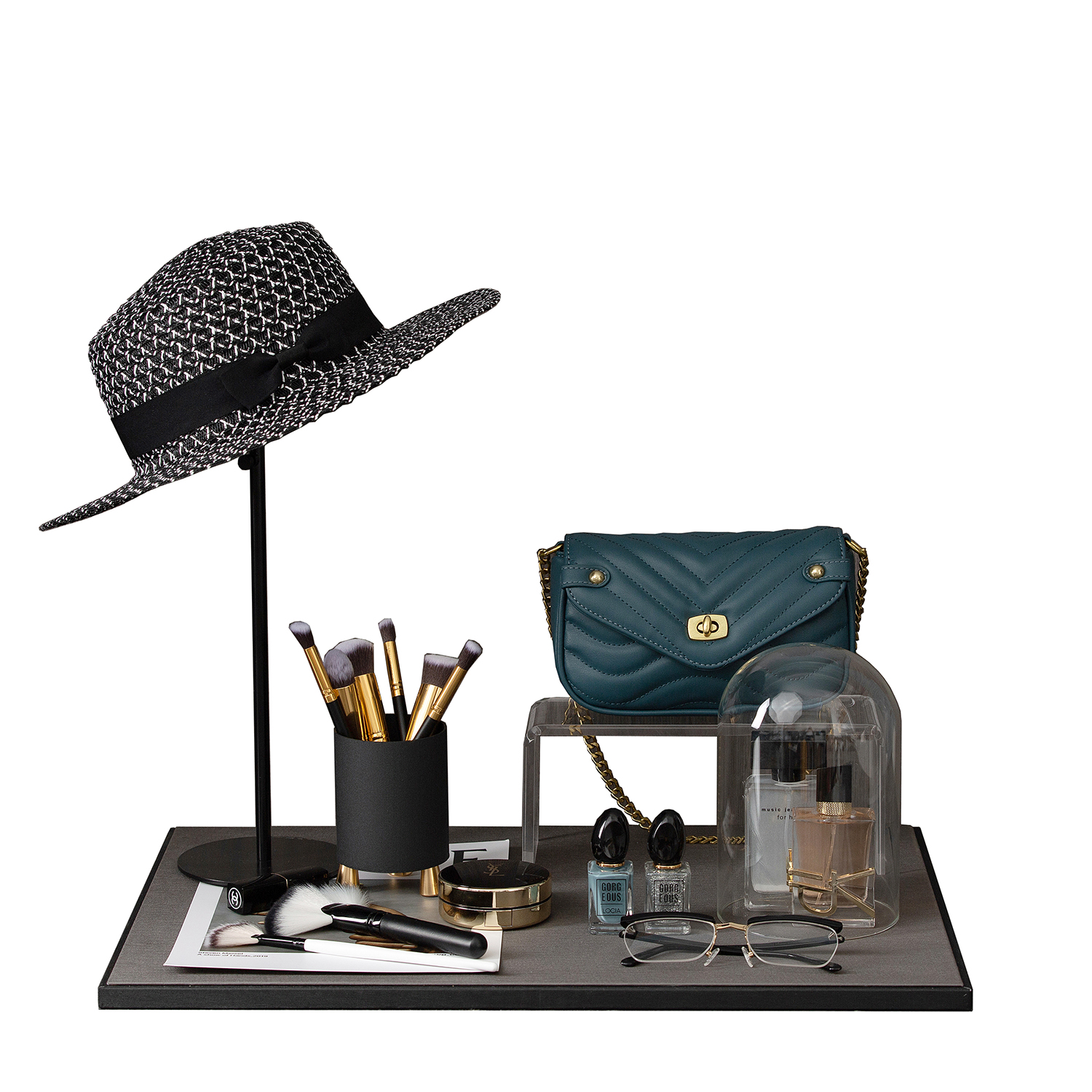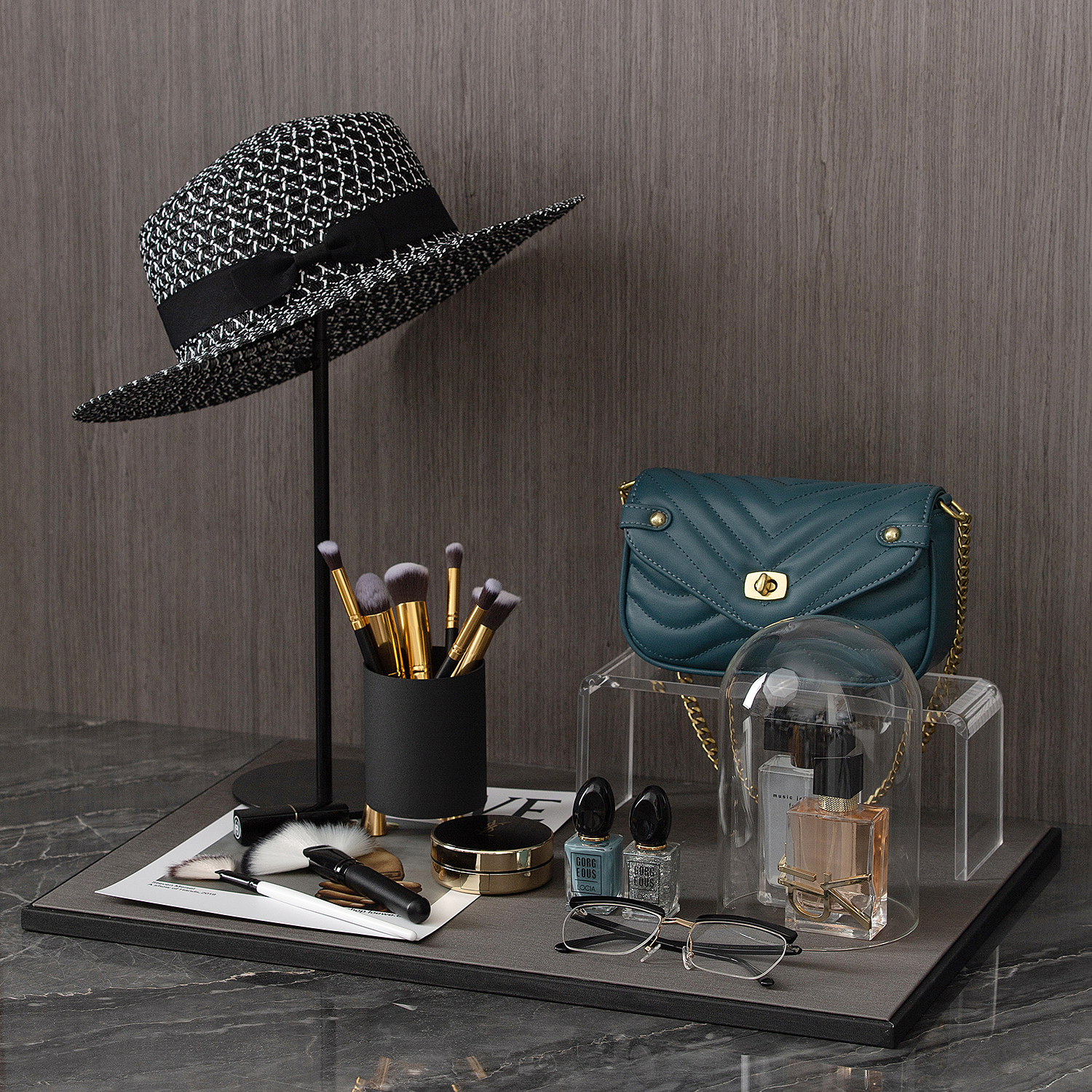 衣帽间样板间软装饰品首饰托盘帽子架女式包化妆刷香水化妆品摆件