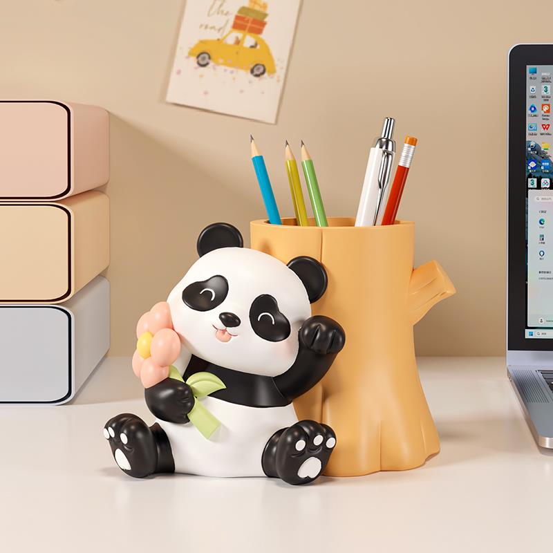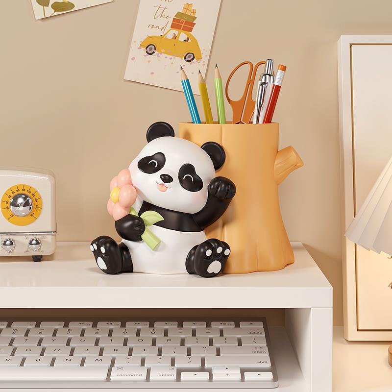 熊猫笔筒收纳儿童学生书桌摆件办公室工位装饰品可爱生日礼物男女