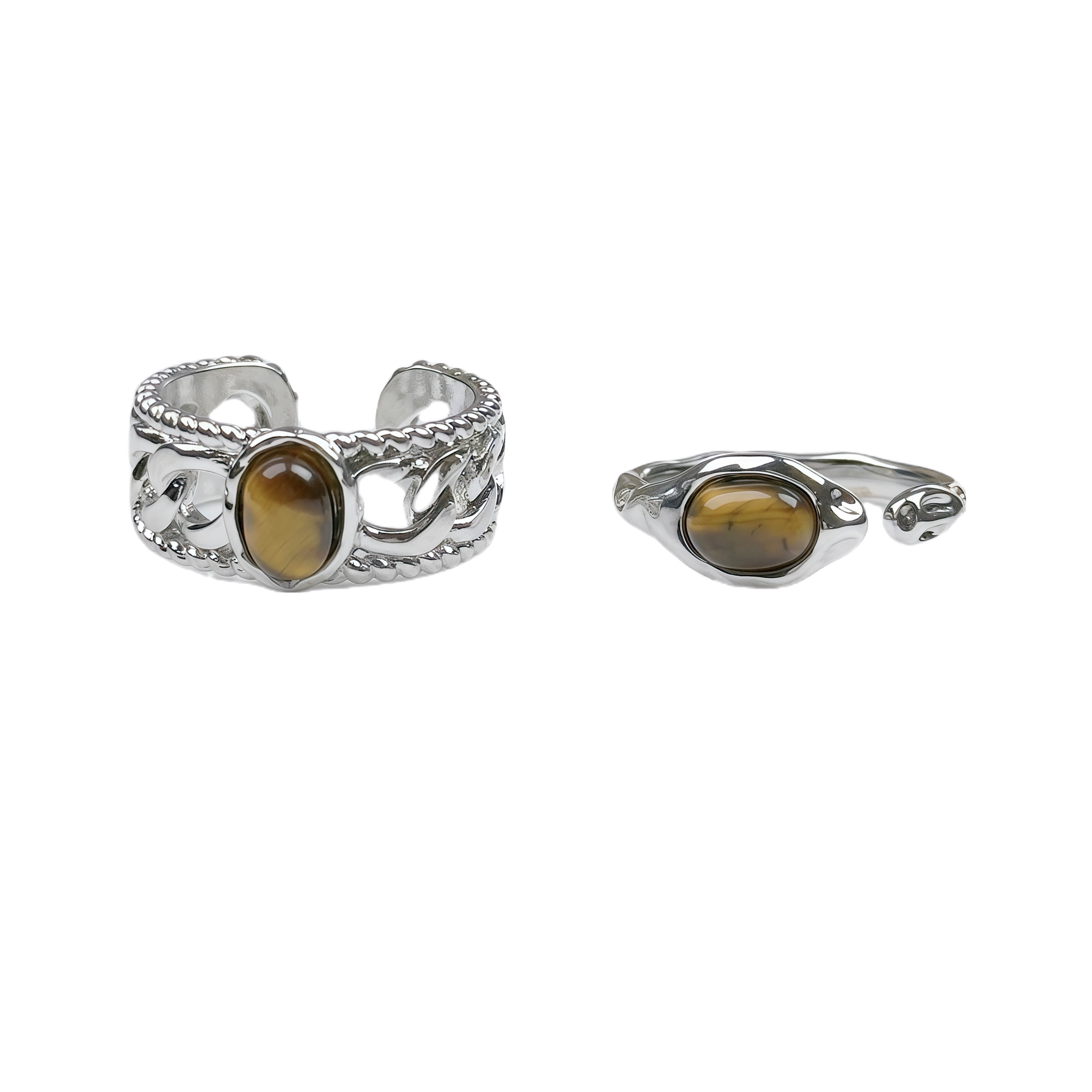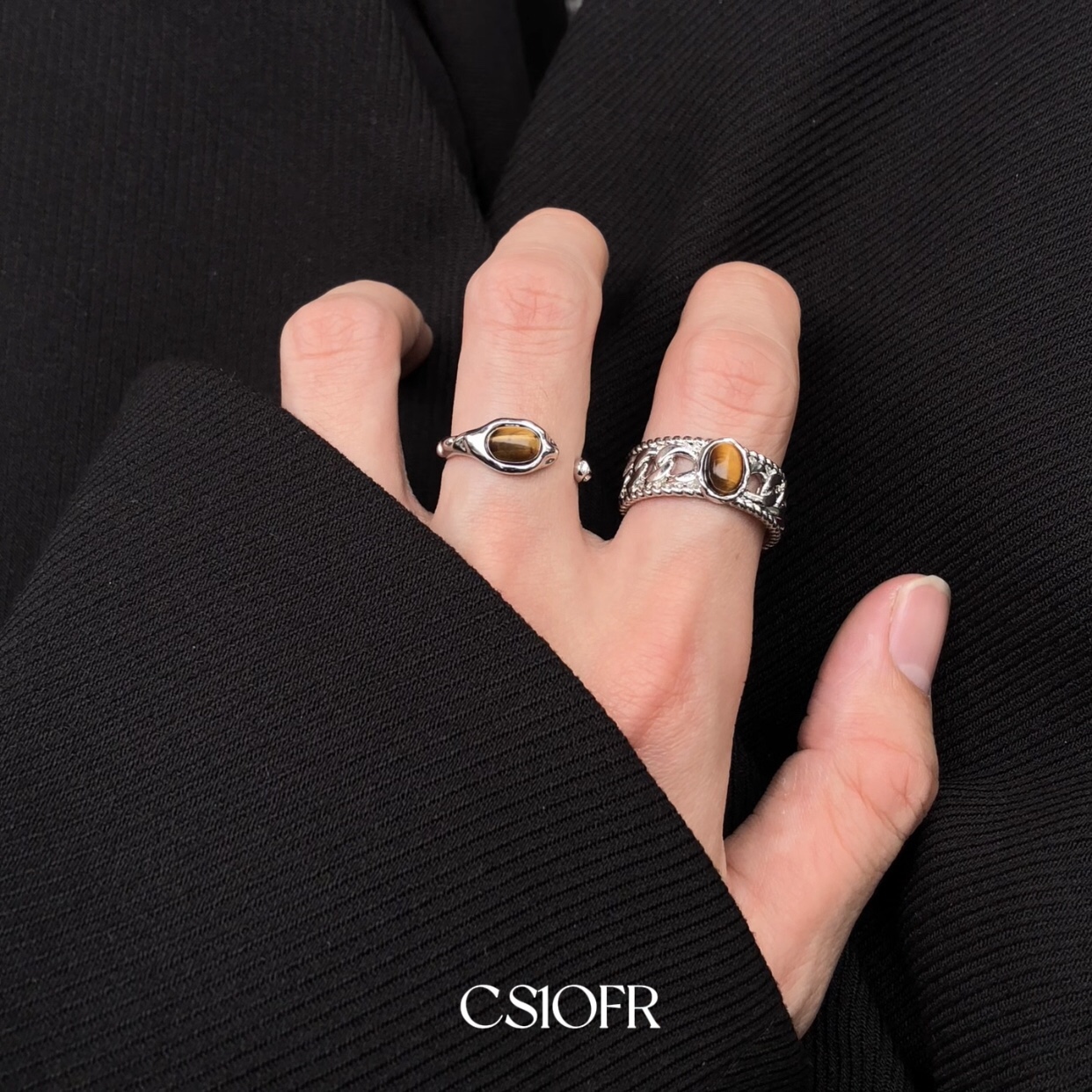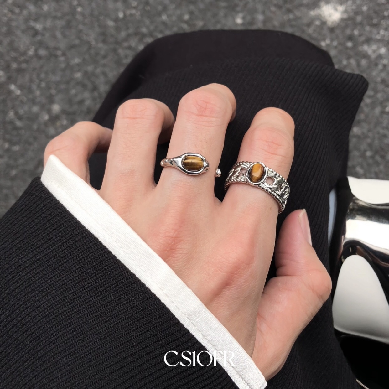 CS1OFR虎眼石男女戒指小众设计简约风开口可调节饰品